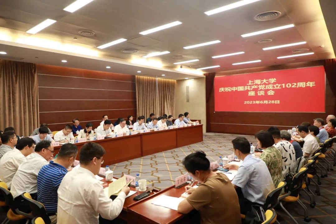 6月28日,beat365手机官方网站召开庆祝中国共产党成立102周年座谈会,深入学习贯彻党的二十大精神,扎实开展学习贯彻习近平新时代中国特色社会主义思想主题教育,全面推进学校党建工作高质量发展,为推动学校高水平大学建设贡献力量。校党委书记成旦红出席会议并讲话,校党委副书记、纪委书记段勇主持会议。