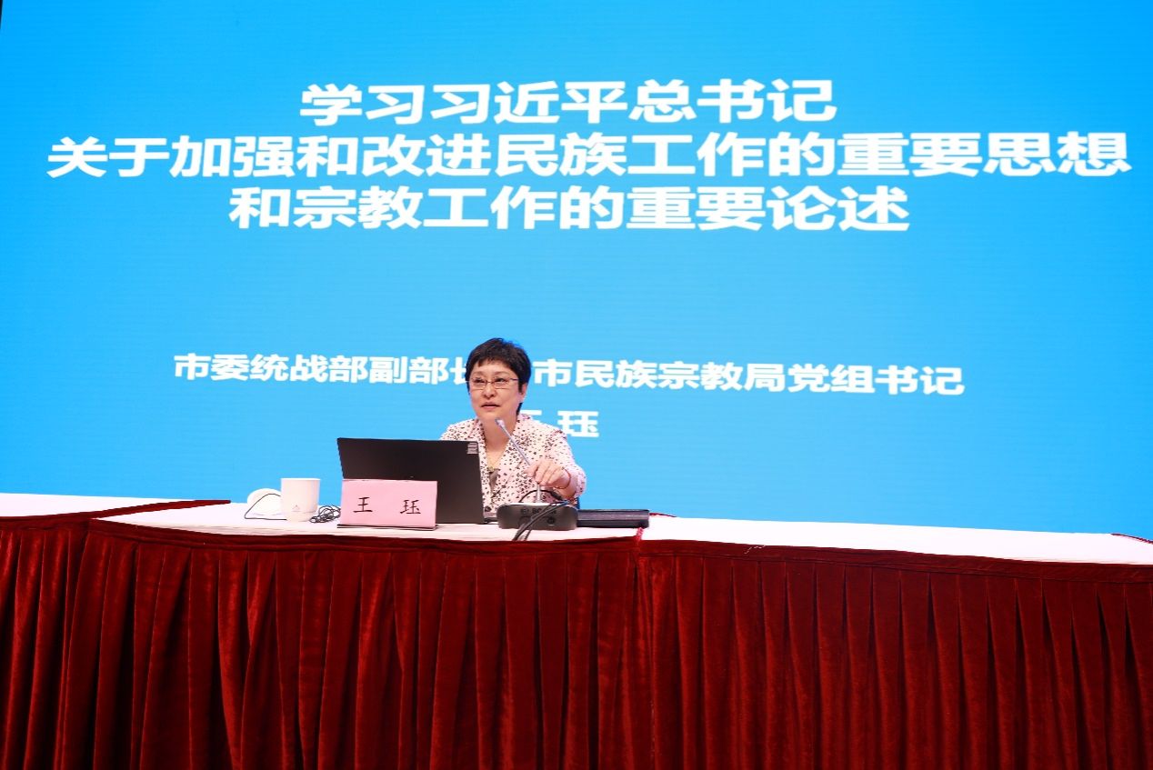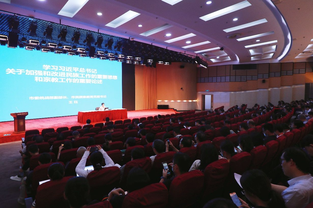 王珏副部长的报告围绕贯彻落实中央民族工作会议精神、全国宗教工作会议精神以及中央民族宗教工作各项决策部署,从民族宗教工作怎么看、怎么办和上海市民族宗教工作实践三个方面进行了系统介绍和深入阐述。王珏副部长结合高校实际,详细介绍了如何以习近平总书记重要论述为指引,在民族工作方面做到“贯穿全过程”“用好主渠道”“关心全天候”“协同全方位”等要求,在宗教工作方面做到“加强教育”“保护合法”“制止非法”等要求,做好新形势下的高校民族宗教工作。