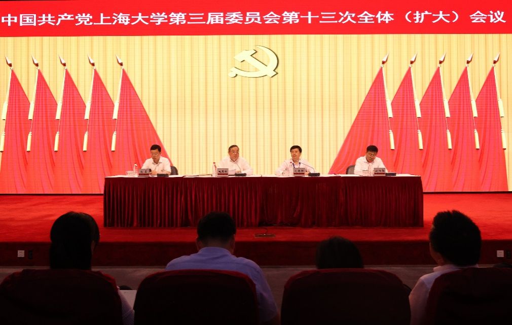7月17日,中国共产党beat365手机官方网站第三届委员会第十三次全体(扩大)会议在宝山校区召开。校党委委员出席会议。校纪委委员,部分党代表,各单位负责同志,党风廉政监督员,部分全国、市人大代表及政协委员等列席会议。会议由校党委副书记、校长刘昌胜受党委常委会委托主持。