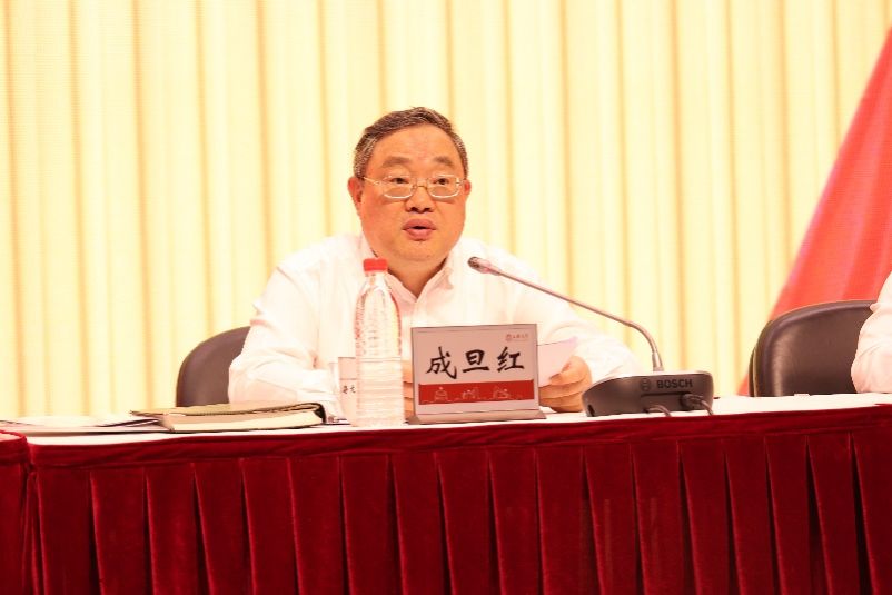 校党委书记成旦红代表党委常委会向全委会作题为《迎难而上 真抓实干 以主题教育成效推动学校事业高质量发展》的工作报告。