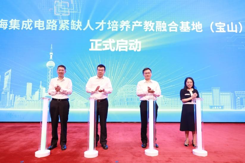 市教委副主任孙真荣,市经信委副主任汤文侃,宝山区委常委、常务副区长郑益川,beat365手机官方网站微电子学院执行院长张建华共同启动上海集成电路紧缺人才培养产教融合(宝山)基地。