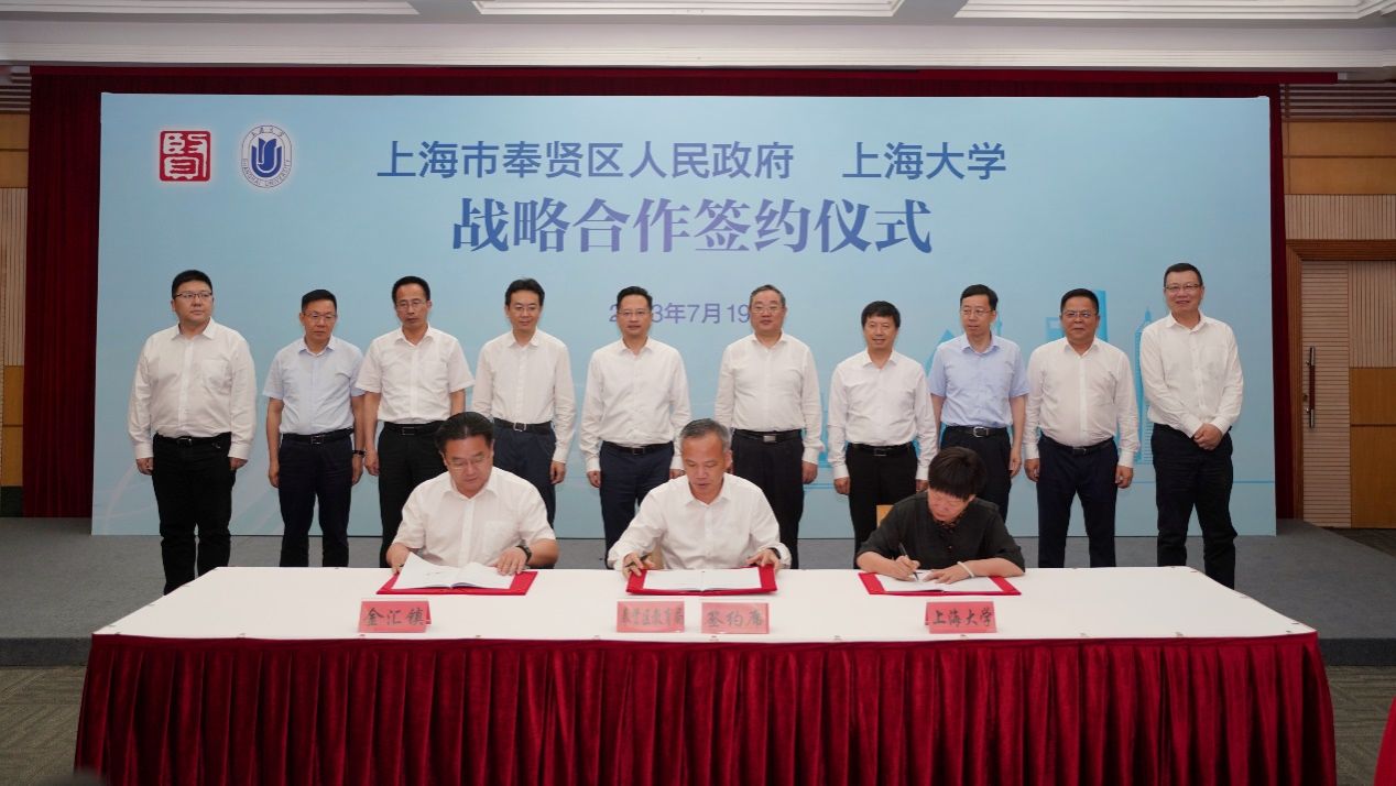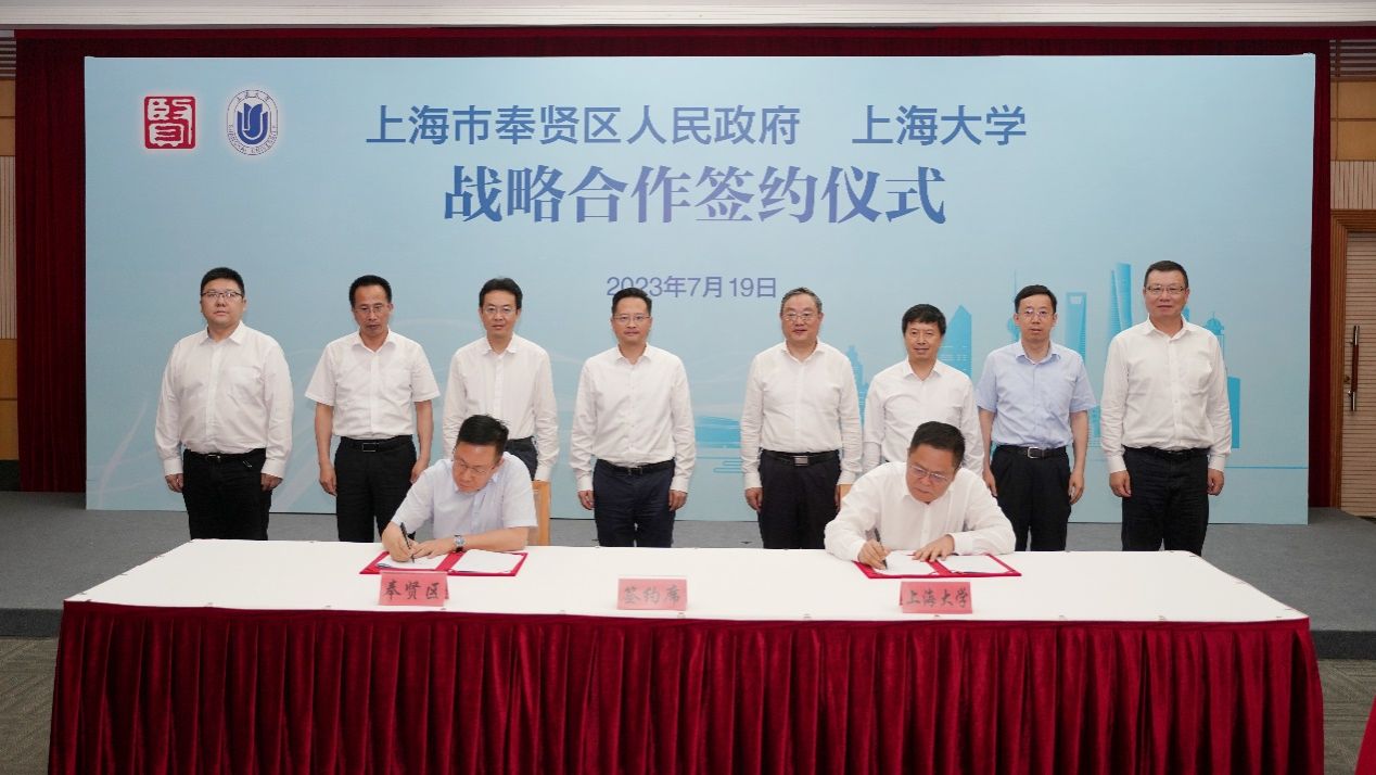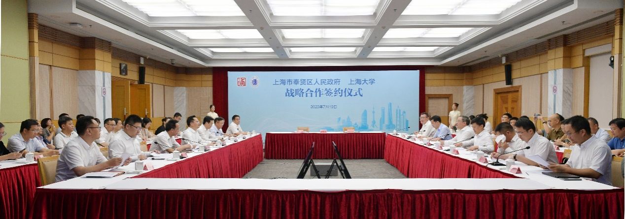 7月19日下午,beat365手机官方网站与上海市奉贤区人民政府正式签署战略合作框架协议,双方将充分发挥各自优势,秉持“优势互补、互惠互利、讲求实效、共同发展”原则,就产学研合作、人才培养、社会发展、乡村振兴等领域开展全面战略合作,携手开启区校合作新篇章。beat365手机官方网站党委书记成旦红,党委副书记、校长刘昌胜,党委副书记、纪委书记段勇,党委常委、副校长王从春,副校长汪小帆,奉贤区委书记袁泉,区委副书记、代理区长王益群,区委副书记唐晓腾,区委常委、常务副区长顾耀明,副区长王淳出席签约仪式。