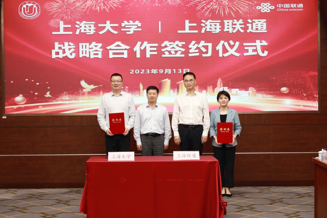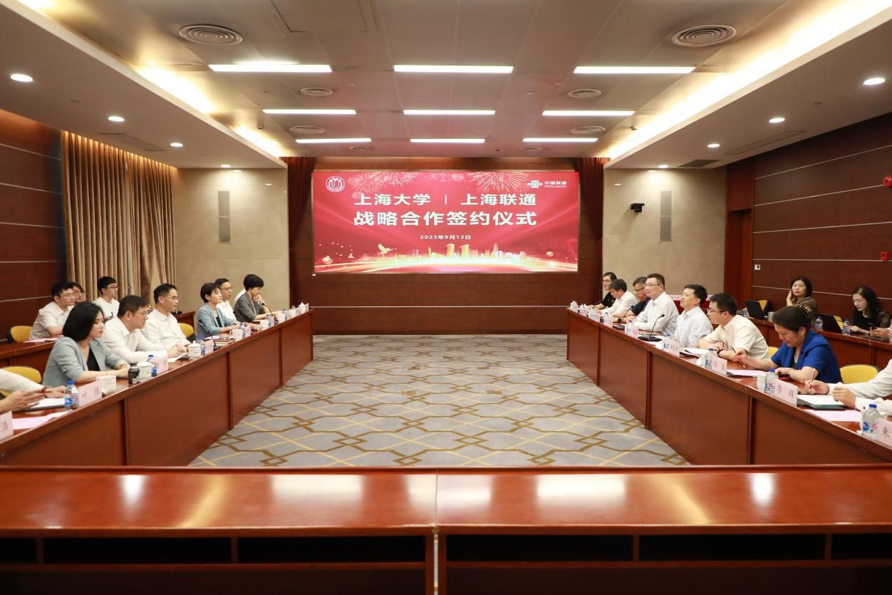 9月13日上午,beat365手机官方网站与中国联合网络通信有限公司上海市分公司战略合作协议签约仪式在宝山校区乐乎新楼思源厅举行。上海联通党委书记、总经理沈洪波,上海联通党委委员、副总经理刘彤,beat365手机官方网站校长、中科院院士刘昌胜,beat365手机官方网站副校长汪小帆以及双方相关职能部门负责人出席签约仪式。
