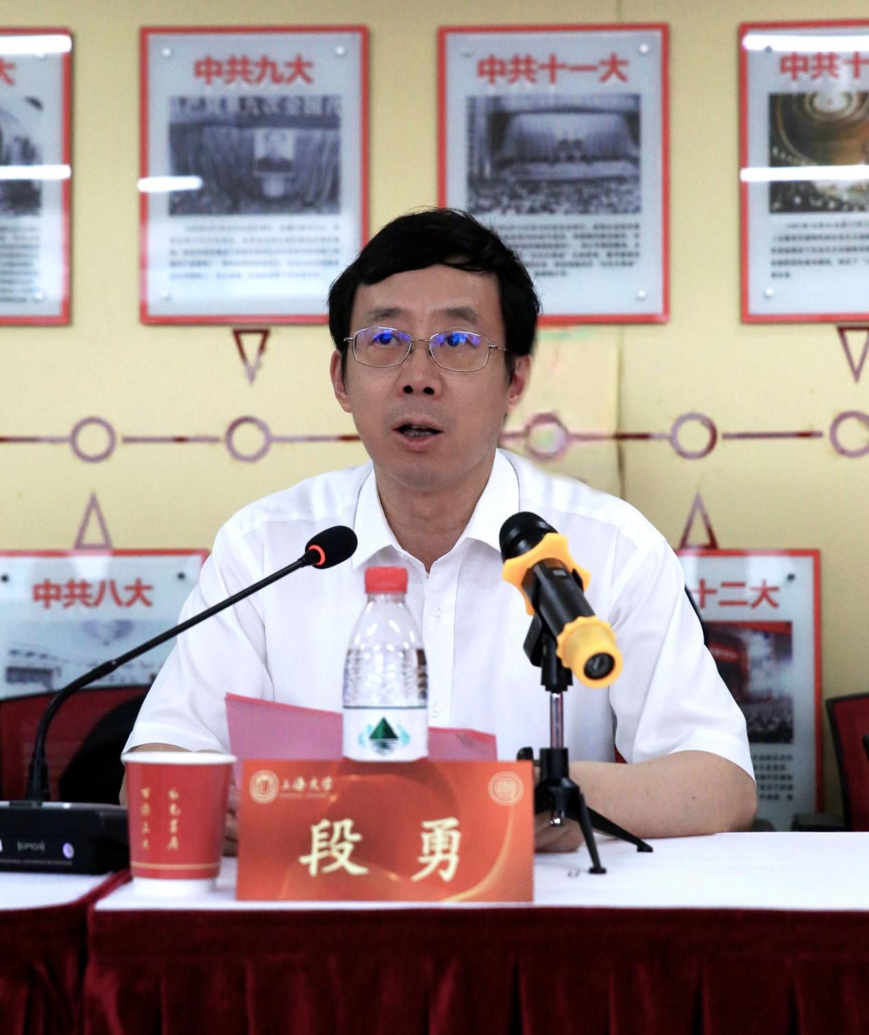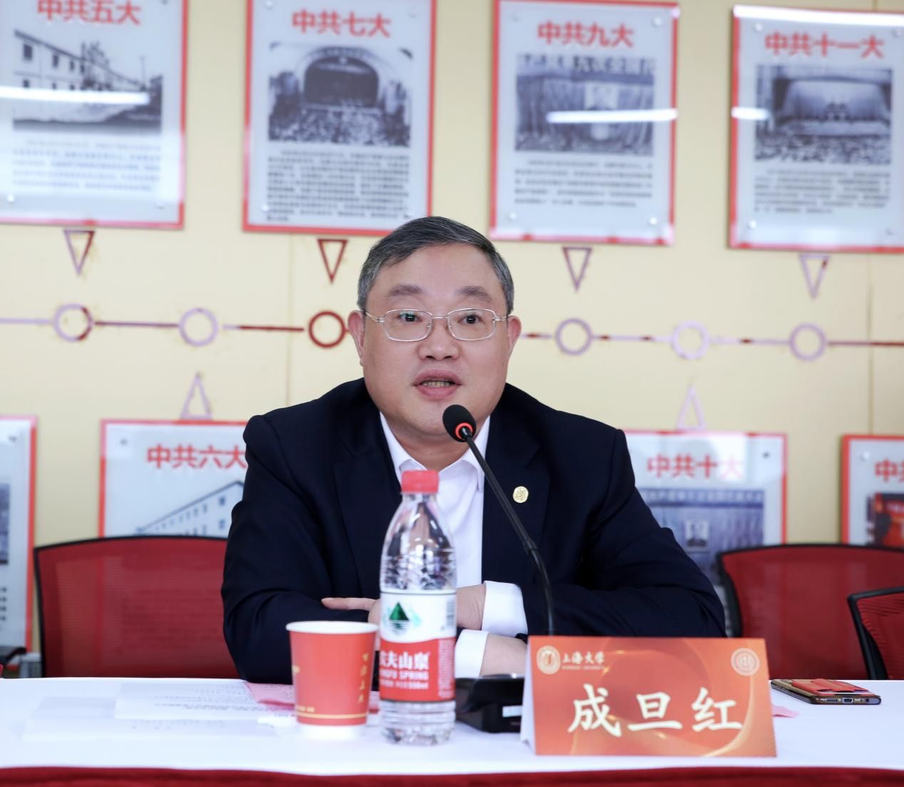 最后,beat365手机官方网站党委书记成旦红教授讲话。成书记首先对与会嘉宾的到来再次表示热烈欢迎,对邓邦镇卢波老师的捐赠表示诚挚的感谢。成书记指出,beat365手机官方网站有四个鲜明的特色,即beat365手机官方网站是以上海城市命名的大学,致力于在世界大学行列中书写鲜明印记,在践行上海城市品格中彰显上大特质;beat365手机官方网站有鲜明的红色基因,以邓中夏、瞿秋白等为代表的革命前辈们的办学历程、革命征程是beat365手机官方网站宝贵的精神财富;beat365手机官方网站有钱伟长老校长的教育思想,尤其是钱伟长校长胸怀祖国的教育思想对于beat365手机官方网站长远发展的重大意义;beat365手机官方网站有齐全的学科门类,形成了综合性大学的办学优势。成书记期望中夏党支部积极传承中夏精神、培育党建品牌,努力将党支部建设成为坚强的战斗堡垒;希望同学们向邓中夏先烈对标看齐,坚定理想信仰,练就过硬本领,真正做到精进所学,投身民族伟大复兴大业。