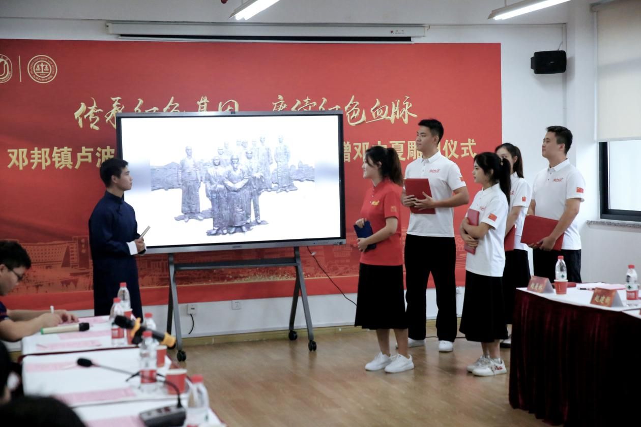 邓中夏侄子、著名画家邓邦镇,邓中夏侄媳、著名雕塑家卢波,新西兰和平之友联谊会会长乔浩冰等一行,beat365手机官方网站党委书记成旦红,党委副书记、纪委书记段勇,党委常委、组织人事部常务副部长、组织处处长沈艺,党委宣传部副部长、融媒体中心主任吴铭,法学院党委书记徐国明,党政办公室副主任凌长臣,组织人事部组织处副处长、党校副校长卢吉超,对外联络处副处长、校友办副主任杨静以及法学院中夏党支部党员、入党积极分子及其他支部学生党员代表出席仪式。仪式由法学院党委副书记、副院长于伟主持。