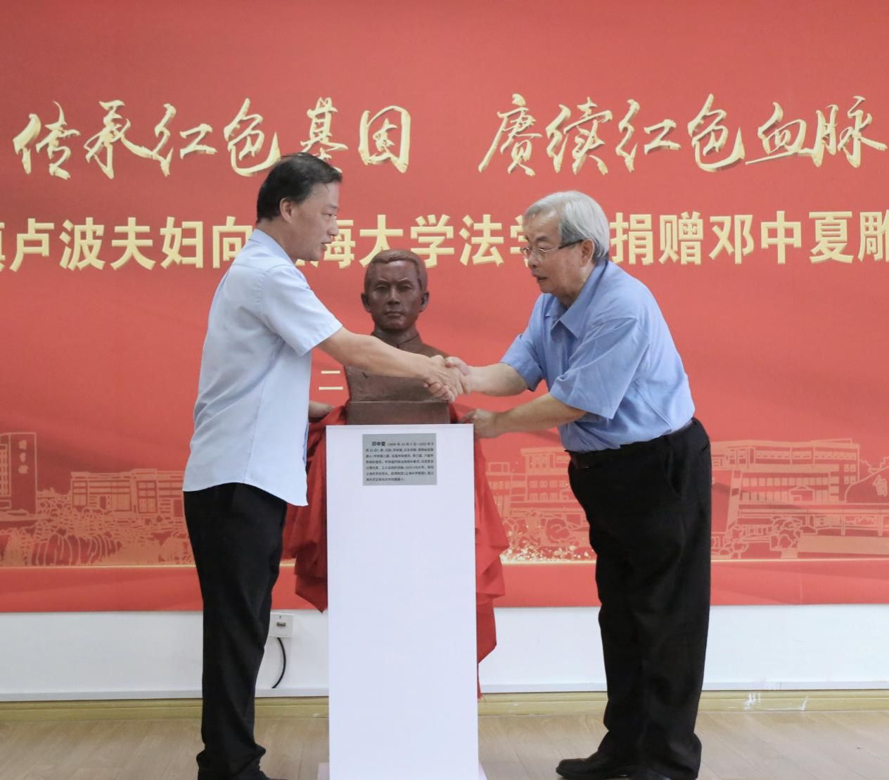 2023年,是邓中夏先烈牺牲90周年。为了进一步缅怀革命先烈,弘扬英烈精神,2023年9月16日,“传承红色基因,赓续红色血脉”——邓邦镇卢波夫妇向beat365手机官方网站法学院捐赠邓中夏雕塑仪式在beat365手机官方网站法学院举行。