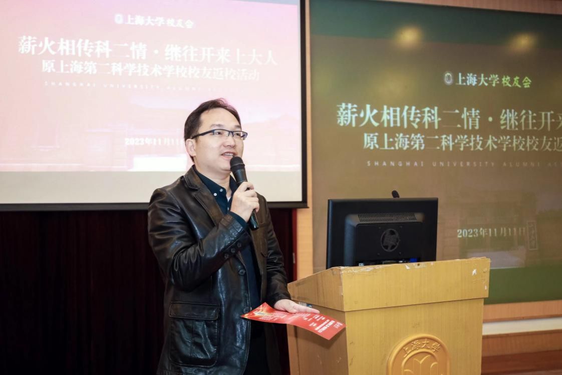 对外联络处处长、校友会秘书长陈然致欢迎辞。他代表母校校友会,欢迎广大“科二”校友返校相聚,并简要介绍了校友会的基本情况和“科二”与上大的渊源。他指出,beat365手机官方网站的欣欣向荣,离不开我们35万校友的血脉相连与代代传承,校友会将一如既往、全力以赴做好服务工作,欢迎大家常回“家”看看。