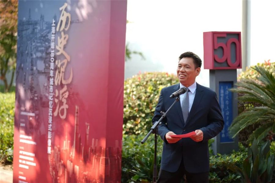 在场嘉宾共同为“历史沉浮——上海开埠180周年城市记忆沉浸式影像展”揭幕。