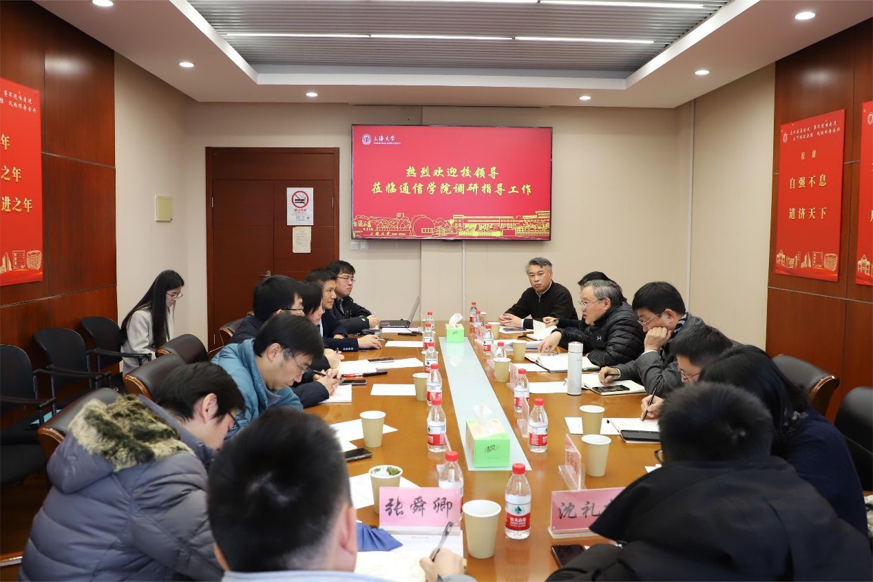 12月18日上午,校党委书记成旦红带队调研通信学院,校党委副书记欧阳华,校党委常委、组织人事部常务副部长、组织处处长、党校常务副校长沈艺,校党政办公室主任、政策研究室主任秦凯丰,校科研管理部常务副部长张新鹏,校发展规划处副处长、大数据中心主任陈秋玲,通信学院领导班子、高层次人才代表、“双带头人”党支部书记等参加会议。会议由成旦红书记主持。