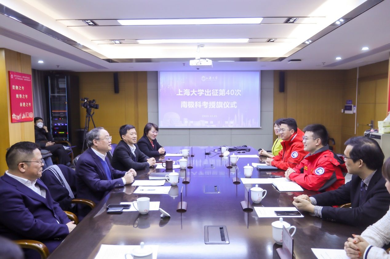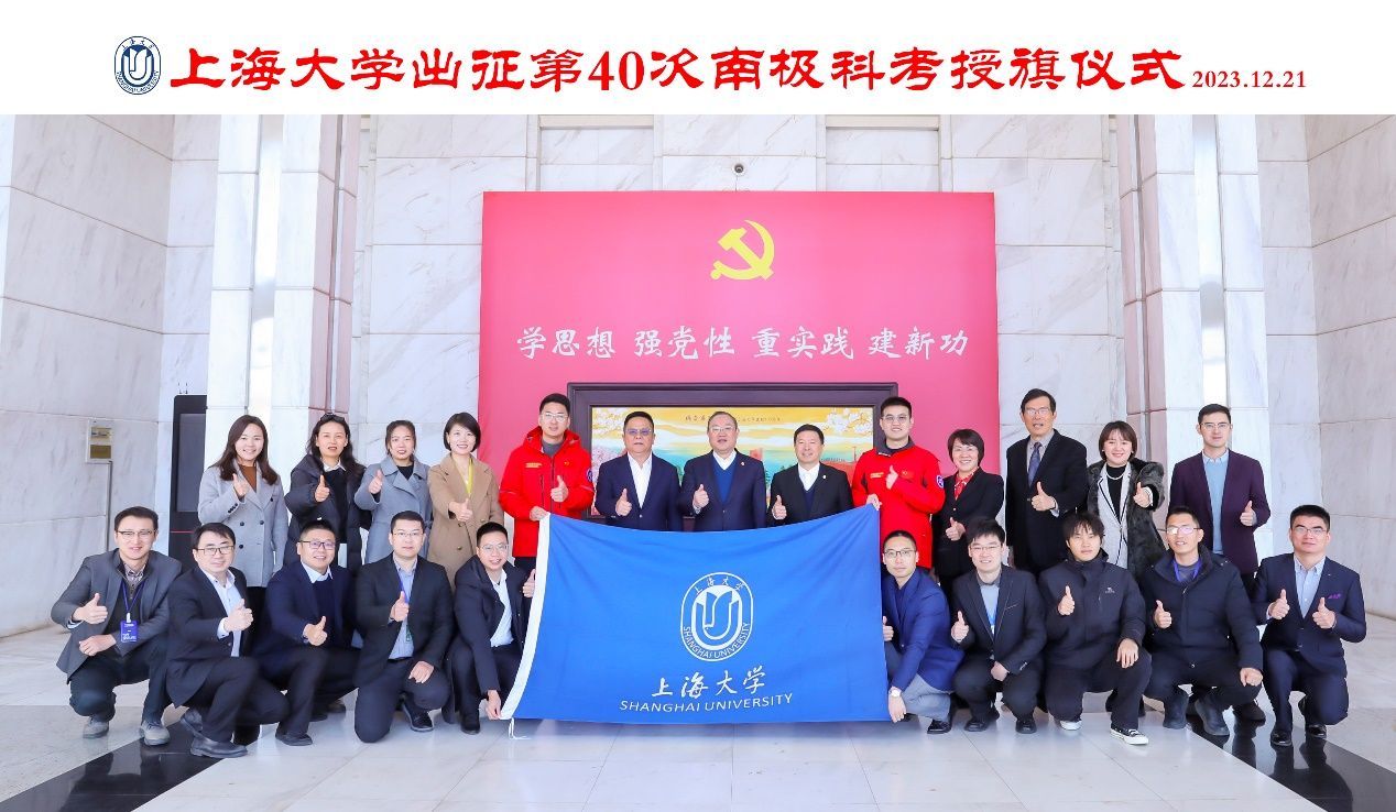 科技创新是支撑国家高质量发展的有力手段,南极科考事业是为国争光的事业,是服务国家的重要工作。程启兴和鲍凌志两位老师有机会参与此次南极科考,不仅是“精海”团队的荣誉,也是beat365手机官方网站的荣誉,是我校支持国家极地科考的重要体现。刘昌胜校长为两位老师授beat365手机官方网站校旗。