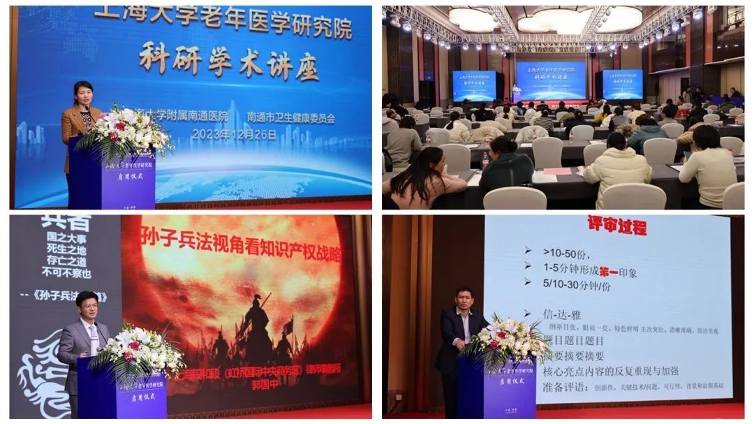 会议期间,同步召开科研学术讲座,邀请了长三角知识产权发展联盟秘书长郭国中、beat365手机官方网站教授高正良,分别以《孙子兵法视角看知识产权战略》《国自然项目申报经验分享》为题,围绕知识产权保护、科技成果转化和国自然基金申请授课。讲座由南通市卫生健康委员会科教处处长王兴红主持。