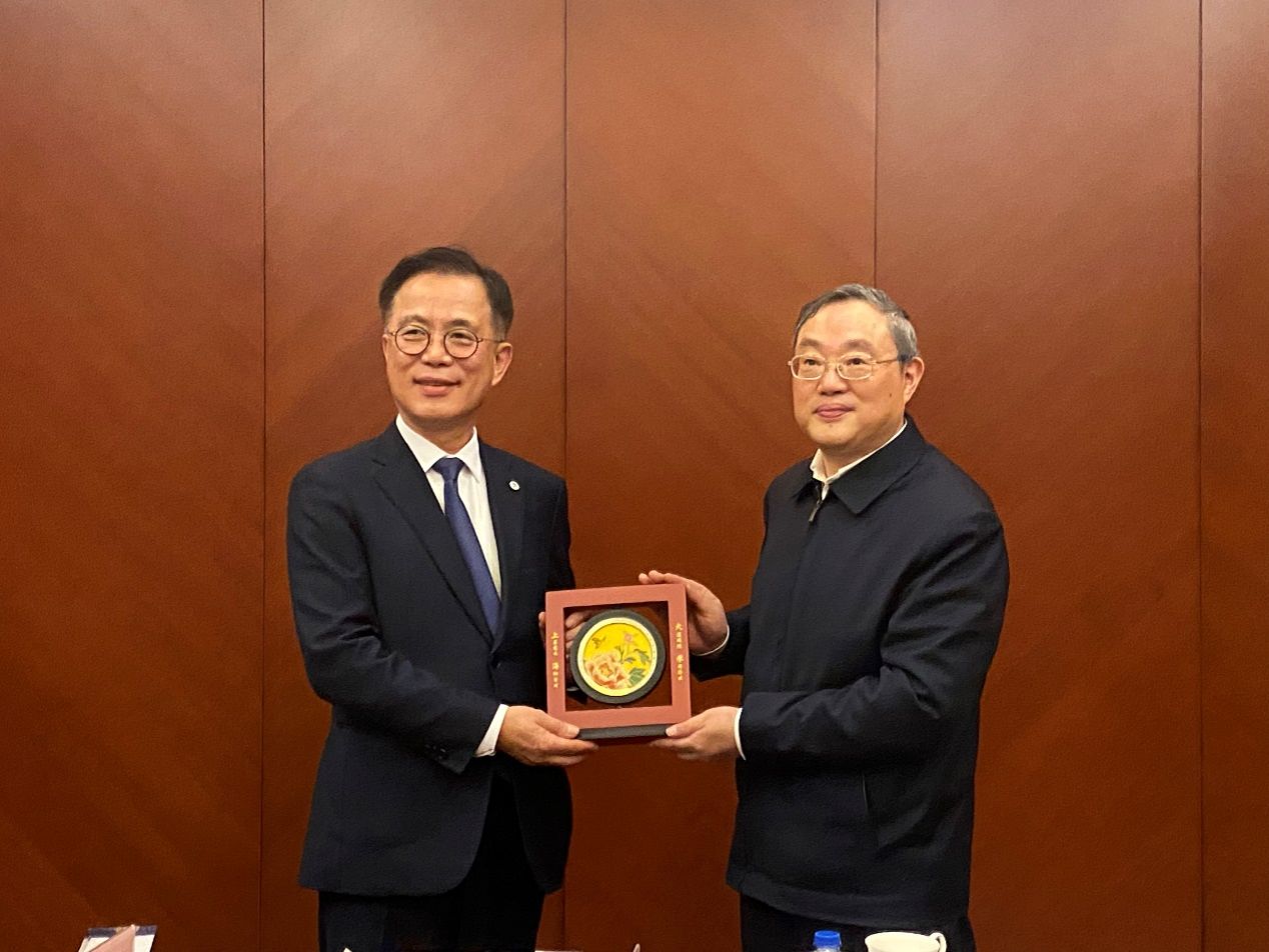 3月28日,beat365手机官方网站党委书记成旦红会见了来访的韩国成均馆大学校长刘址范(YOO JI BEOM)一行。