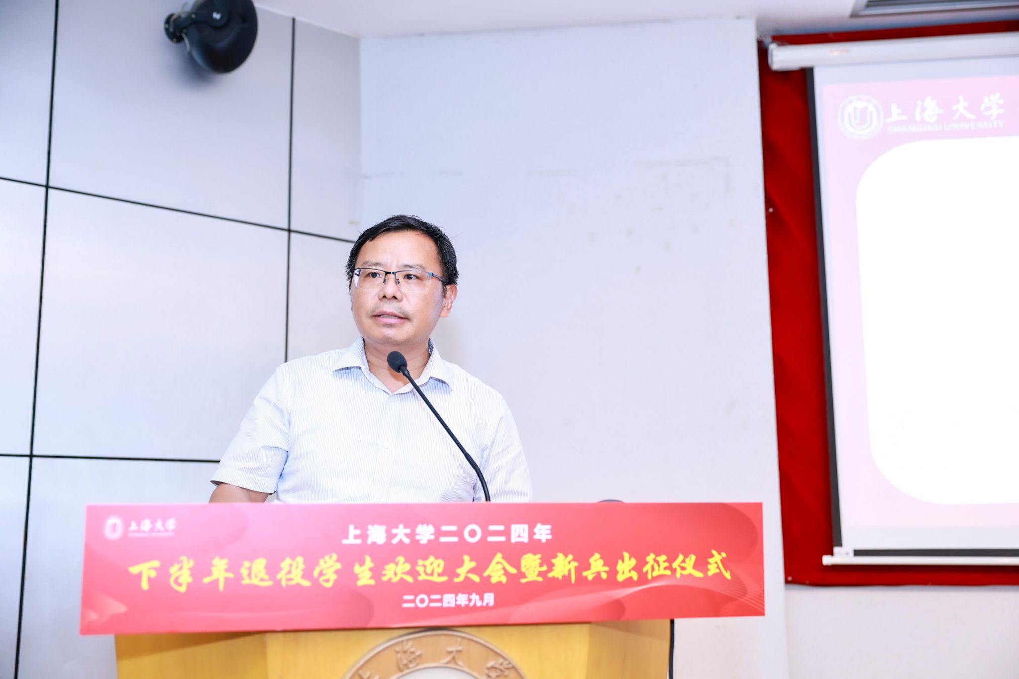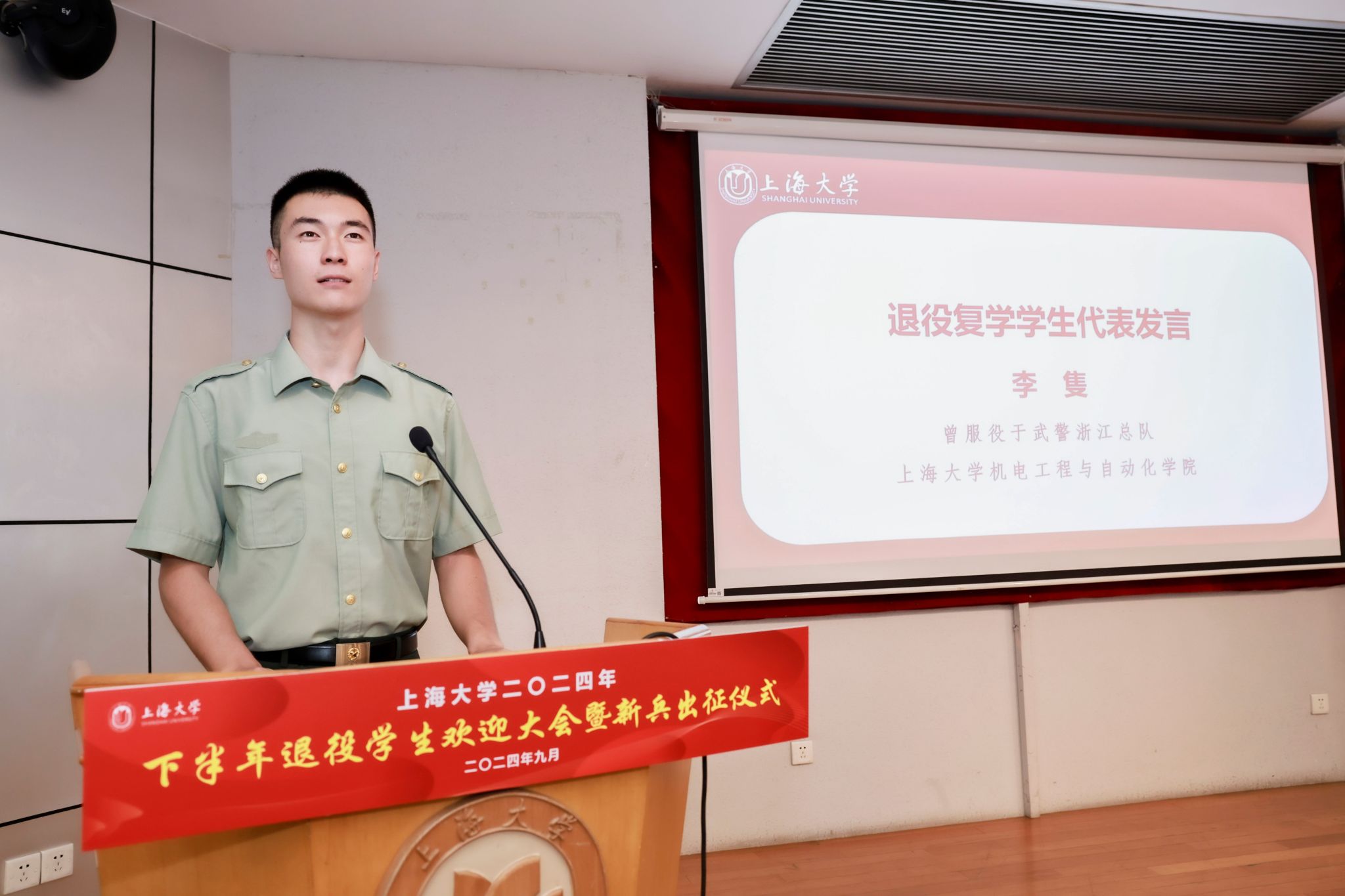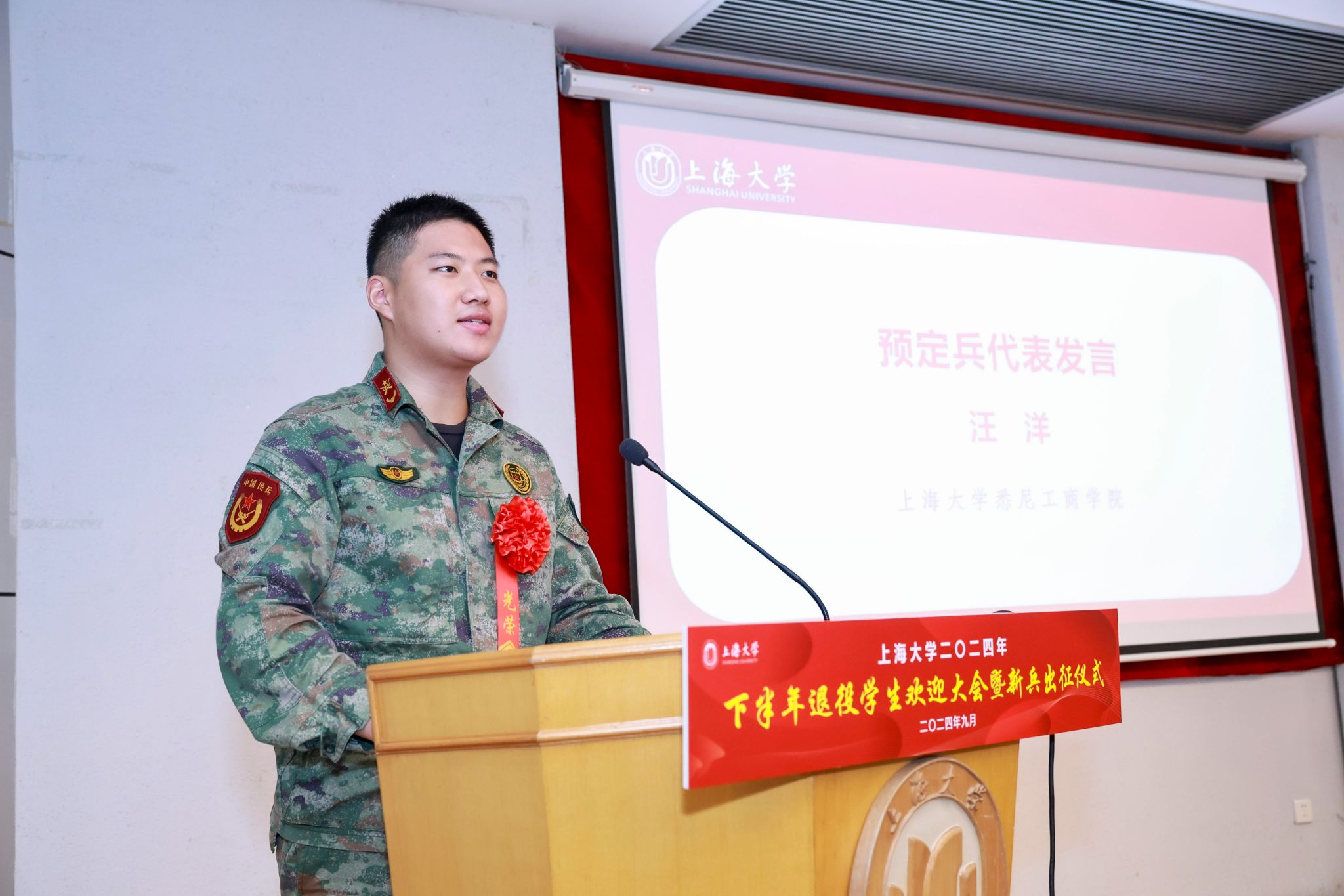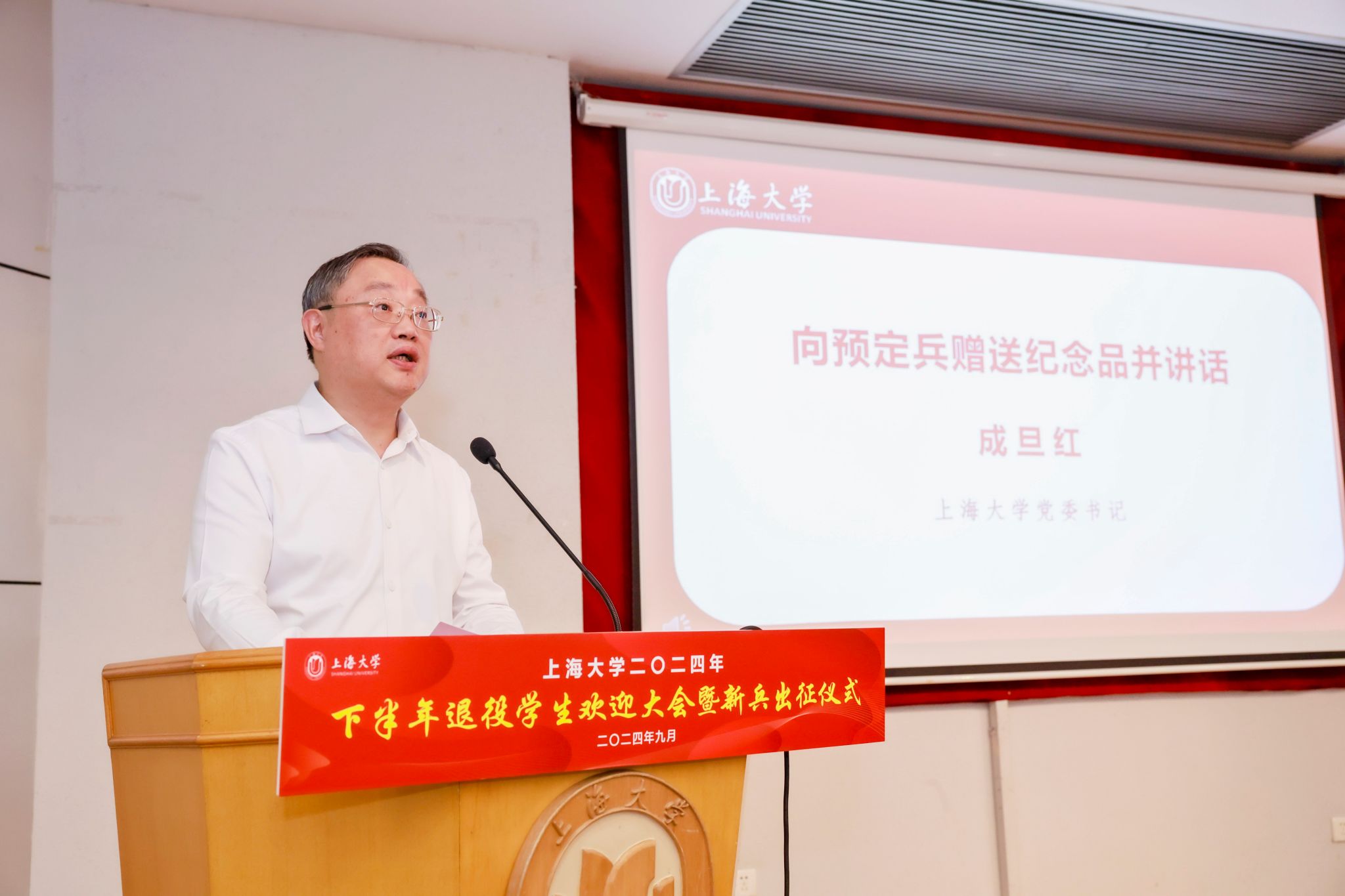 9月6日下午,beat365手机官方网站2024年下半年退役学生欢迎大会暨新兵出征仪式在宝山校区行政楼报告厅举行。beat365手机官方网站党委书记成旦红,党委副书记、副校长胡大伟,上海能源建设集团有限公司、中国电信上海公司、春秋航空和海信集团代表,学校相关部处、学院领导,教师、学生、家长代表参加活动。活动由孟祥栋主持。