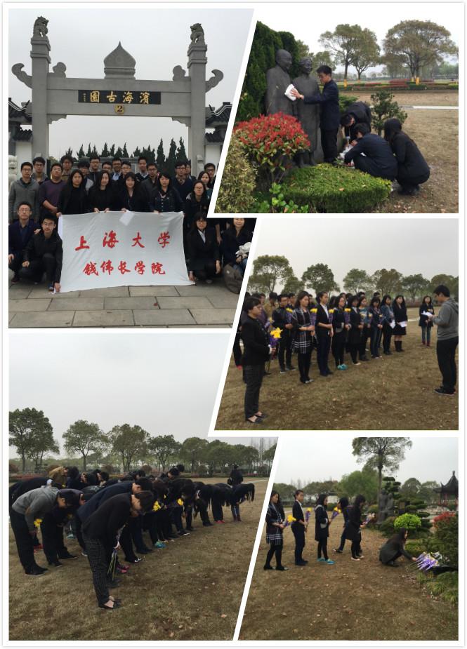 4月3日中午12:00,钱伟长学院师生一行40余人从beat365手机官方网站出发,伴着清明时节的纷纷细雨,前往滨海古园缅怀老校长钱伟长。钱伟长学院直属党总支副书记韦淑珍、辅导员阮杜娟参加缅怀仪式。