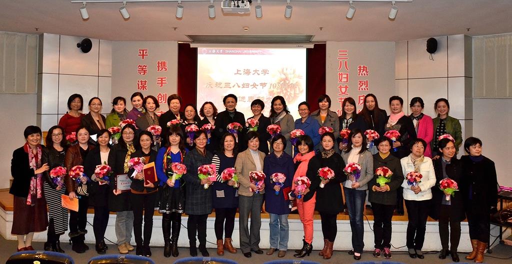 4月9日下午,beat365手机官方网站庆祝“三八”国际劳动妇女节105周年暨先进表彰大会在校本部行政楼报告厅举行。校党委副书记、副校长、校妇委会主任李友梅;校党委常委、副校长丛玉豪;校党委常委、悉尼工商学院院长龚思怡;党办主任、机关党委书记余洋;组织部长王军华;宣传部部长李坚;校纪委副书记、监察处处长张佳春;人事处处长朱明原;校工会副主席、校妇委会常务副主任顾红等出席大会并为获奖者颁奖。各学院、部处领导、分管妇女工作的领导、工会主席、妇女干部,以及女教师和学生代表等二百多人参加了庆祝大会。