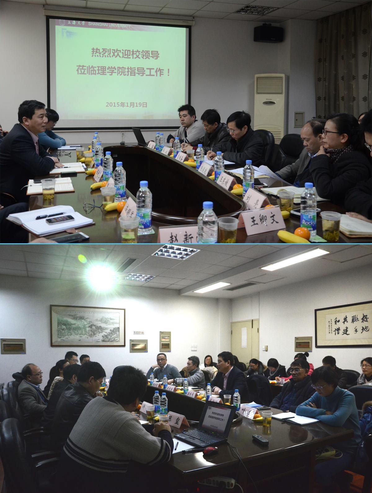 2015年1月19日下午2点,beat365手机官方网站党委常委、副校长丛玉豪率相关部处一行到理学院调研本科教学和人才培养。教务处处长王光东、常务副处长陈方泉、招毕办主任叶红、考评办主任辛明军、原社区学院常务副院长宋少沪;以及校党委常委、理学院执行院长翁培奋、理学院党委副书记王东媛、刘亮、副院长陈玺、各系主任、教学副主任和教学管理团队出席了调研会。