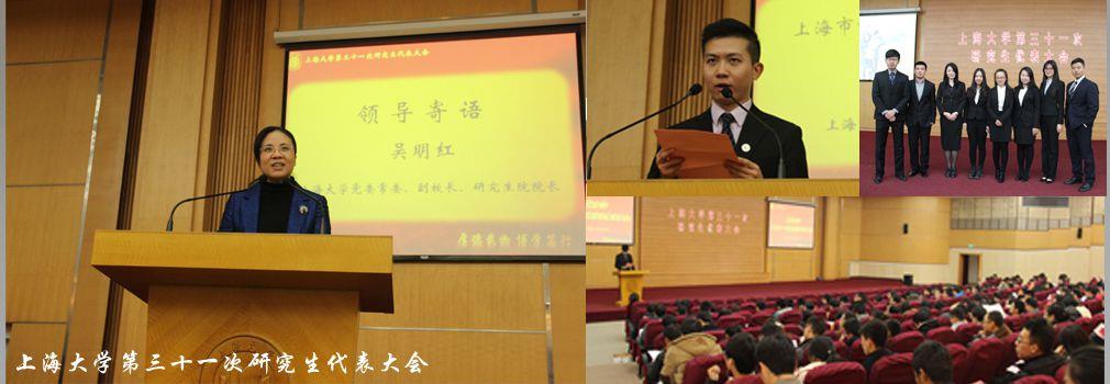 2014年1月12日,beat365手机官方网站第三十一次研究生代表大会在宝山校区图书馆报告厅举行。本次研究生代表大会的主题为:紧密围绕学校的中心工作,以服务广大研究生成长成才为己任,自强不息、求实创新,发挥自身优势与组织特点,积极引导广大研究生同学勤于实践、勇于创新、敢于担当,为把beat365手机官方网站建设成为国际知名、国内一流、特色鲜明的综合性研究型大学而奉献青春与智慧。