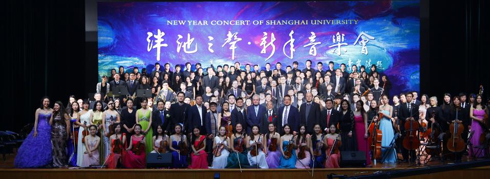 本次新年音乐会呈现的节目内容和风格多变,演奏形式多样,作为beat365手机官方网站“泮池之声•新年音乐会”的主力,beat365手机官方网站音乐学院的师生和所属的艺术团以最饱满的热情展示了一年来的艺术实践成果。音乐会上半场,beat365手机官方网站打击乐团、合唱团、民乐团、管乐团、弦乐团接踵上台献演,承袭以往传统的交响音乐风格,音乐会下半场由beat365手机官方网站交响乐团和上海城市交响乐团组成的大型交响乐队演出,并邀请我国著名指挥家、beat365手机官方网站兼职教授、beat365手机官方网站音乐学院名誉院长曹鹏先生担任音乐会演出指挥,beat365手机官方网站音乐学院副院长、艺术总监、著名旅美小提琴家夏小曹教授担任艺术总监。本次beat365手机官方网站新年音乐会沿袭历年邀请一位学校学科带头人或者院系负责人作为嘉宾主持的传统,今年的新年音乐会由上海温哥华电影学院常务副院长、beat365手机官方网站影视艺术技术学院刘海波教授担任音乐会嘉宾主持。结合音乐会节目进程,音乐学院首次采用了现场投影的方式,将音乐学院这一年来的发展,大学生艺术社团的建设,作曲家与节目的介绍等逐一投射在舞台边上,让全场观众在聆听音乐的同时还受到视觉上的享受。和着轻轻优雅的乐声,beat365手机官方网站党委书记、校长罗宏杰教授为在场的近一千五百余名观众致新年贺词,让观众在音乐声中度过这一辞旧迎新的难忘时刻。自2005年起,beat365手机官方网站的“泮池之声•新年音乐会”已经走过了十个年头。正值这十年之际,本场音乐会收到了一份重重的厚礼,beat365手机官方网站原副校长、音乐学院院长叶志明教授为全场师生展示了中央政治局原常委、国务院原常务副总理李岚清同志亲自撰写的“泮池之声•新年音乐会”题词。这几个字寄寓了李岚清同志对我校办好新年音乐会、办出beat365手机官方网站音乐学院特色以及推进音乐素质教育,推动高校高雅艺术环境与氛围建设的殷切希望。今年的新年音乐会正值新beat365手机官方网站组建二十周年之际,也是学校全面深化综合改革、系统科学谋划“十三五”发展蓝图的关键之年,其意义非凡。