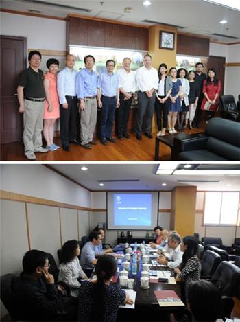 汪校长首先对客人的到访表示热烈的欢迎,随后万旺根处长介绍了beat365手机官方网站的基本情况,包括办学规模,学科特色,国际合作等等。在认真听取了beat365手机官方网站的介绍后,Ron Burnett校长说,艾米丽卡尔艺术设计大学是一所规模比较小,但是专业性很强的大学,其中设计类占到40%,艺术类20%,美术类35%。他们的特长是研究,强势学科包括健康,电影,3D,材料科学,纺织,机器人和社会媒体等等。艾米莉卡尔艺术与设计大学是加拿大不列颠哥伦比亚省著名的公立大学,坐落于风景优美的温哥华市,提供美术、设计、艺术类的学士学位,设计和应用艺术的硕士学位,采取小班教学的方式,其中四分之一的学生是国际学生。这所大学是世界上一流的设计学院,与全球知名的艺术学院都有密切的联系,并且在业界有超过300家的合作伙伴。