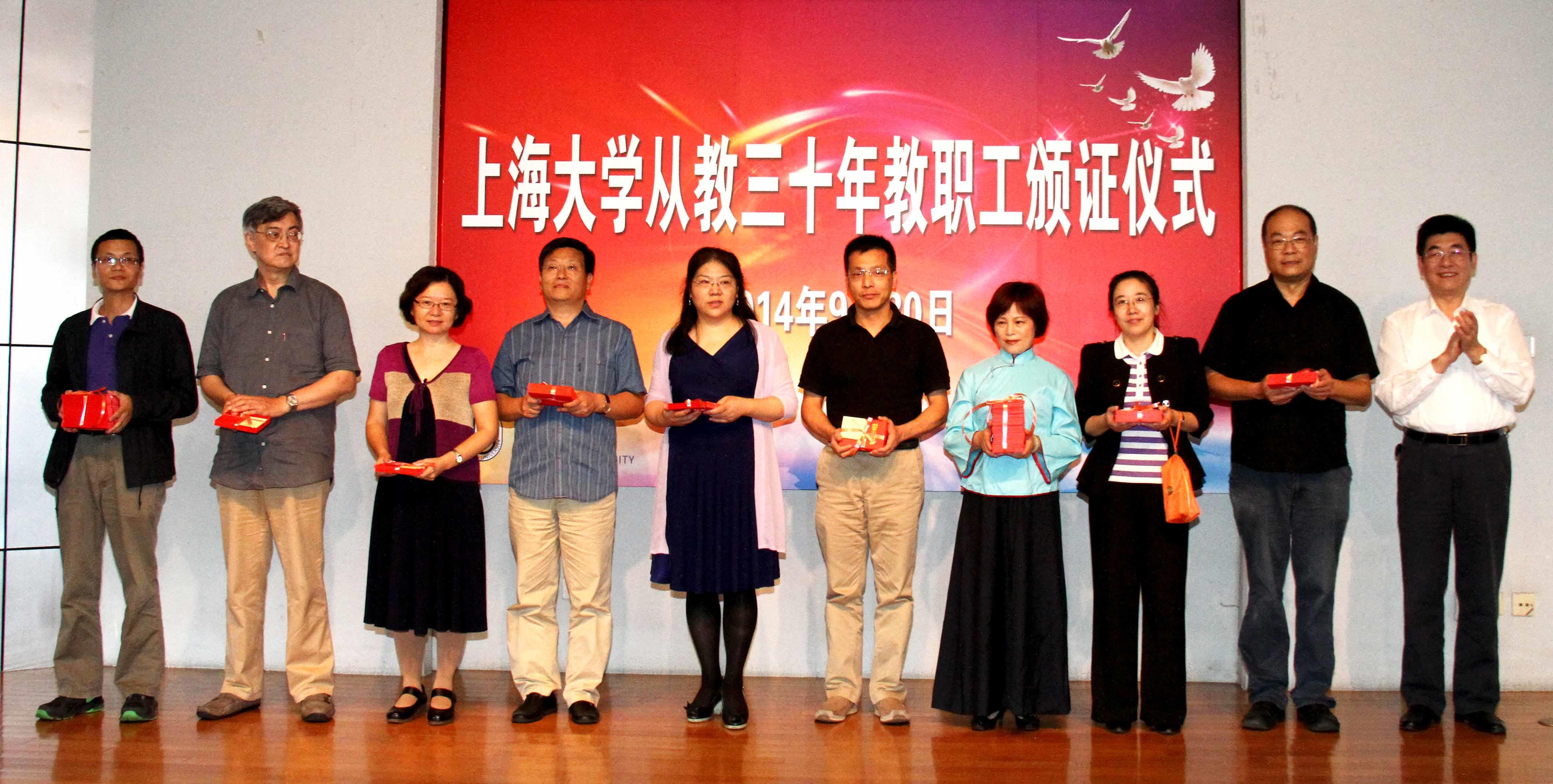 30年,路漫漫;30年,情悠悠。30年,对别人可能只是一个数字;但是对经历了30年风雨,并培养了一批又一批国家栋梁之才的教师来说,其意义非凡。今年也是忻平同志从教30年,他代表校工会、妇委会作了讲话。他指出,beat365手机官方网站在短短20年的时间里,在包括与会同志在内的全体师生员工的共同努力下,取得了许多重要的进展。学校的发展与每一个教职员工的发展是紧密相连的,希望大家都能够在实现“上大梦”、“中国梦”的进程中实现人生出彩的美好愿望。他表示,在座的各位老师虽然已经走过了人生的大半路程,但是后面的路各位肩上的担子更重,责任更大,更要走好,要继续为学校的发展发挥光和热,要让青年教师接过我们手中的接力棒。来自理学院的陈立群教授、文学院的张寅彭教授、机自学院的费敏锐教授以及机关系统、信访办主任余志龙老师和大家一起分享了他们从教30年的故事。几位老师回顾了他们投入大量时间和精力提高教学质量,从事科学研究、管理工作,与学生一起成长的历程,并表示感谢学校为他们提供了发展的平台,他们将更加努力地工作,为青年教师做好“传帮带”。简单、质朴的言语中传递着从教30年教师们健康、积极、乐观的正能量。