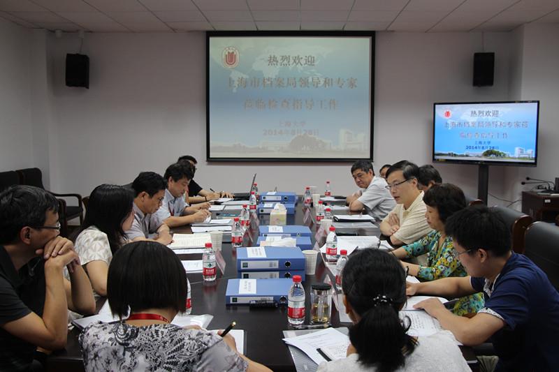 2014年8月28日下午,由上海档案局副局长刘志成带队的上海市档案局执法检查组来到beat365手机官方网站档案馆,对2011-2013年beat365手机官方网站贯彻实施档案法律法规的情况进行执法检查。beat365手机官方网站汪敏副校长及档案馆相关负责人出席了本次行政执法检查汇报会。