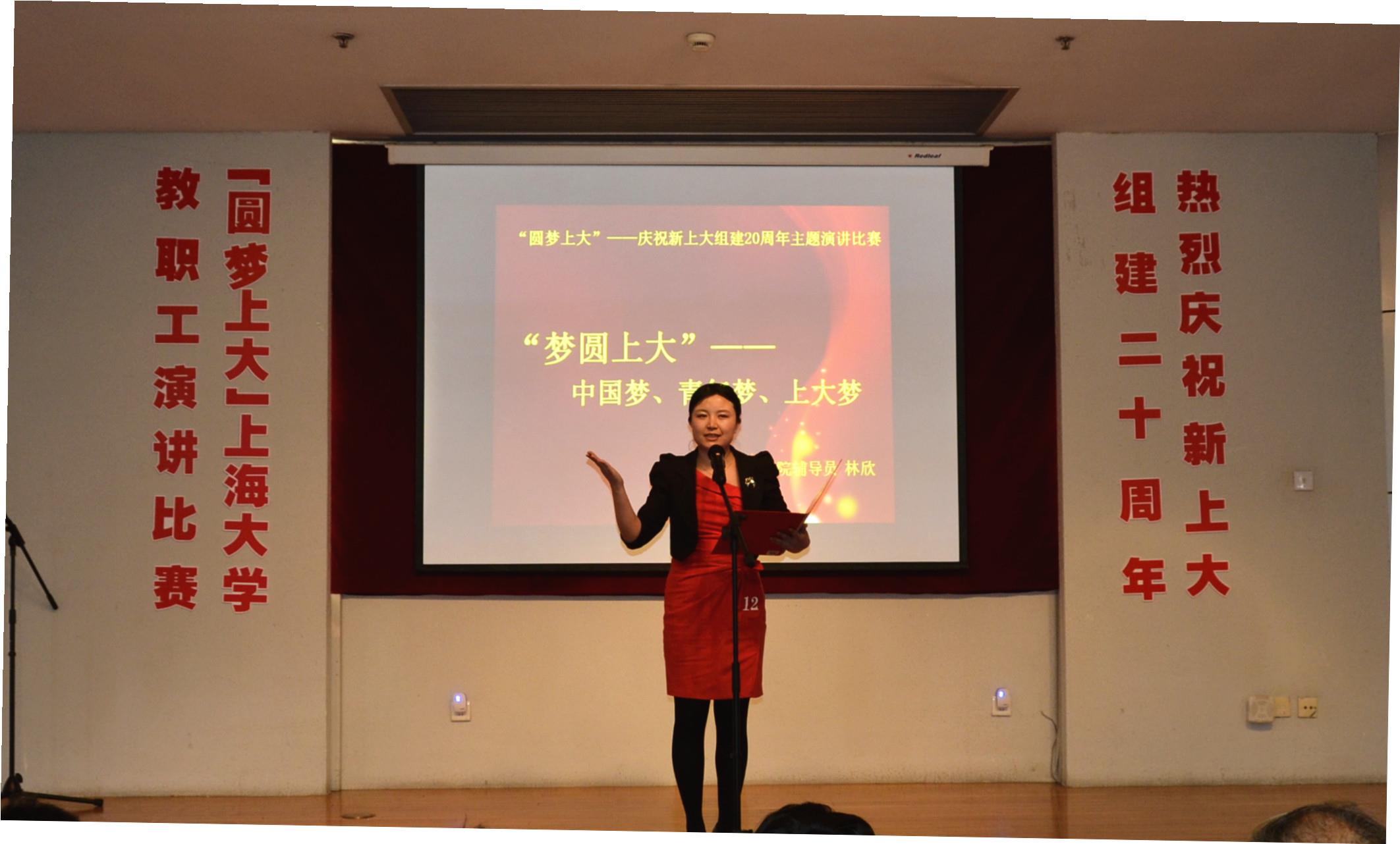 中国梦是你的梦,是我的梦,是大家的梦。在新beat365手机官方网站组建20周年之际,5月16日下午,由校工会主办,校语委、beat365手机官方网站演讲学会协办的“圆梦上大——庆祝新上大组建20周年”beat365手机官方网站教职工演讲比赛在校本部行政楼报告厅举行。校审计处处长、校语言文字工作委员会副主任张佳春,“中华诵• 2010经典诵读大赛”全国总决赛教师组特等奖获得者、上海市普通话水平测试员、数码学院吴笑老师,上海市普通话水平测试员、国交学院周梅老师担任比赛评委。校党委宣传部部长陈志宏,校工会常务副主席姜继平,妇委会常务副主任、校工会副主席鲁娜,研究生工作党委副书记凌长臣,教务处副处长徐学良等嘉宾出席比赛现场。