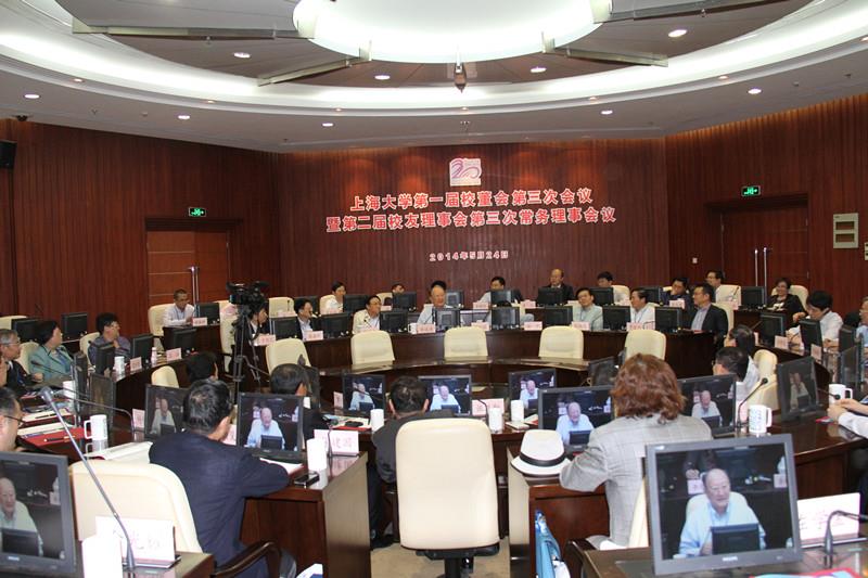 2014年5月24日,beat365手机官方网站第一届校董会第三次会议暨第二届校友理事会第三次常务理事会议在beat365手机官方网站校本部国际会议中心隆重举行。beat365手机官方网站校董会主席、校友会名誉会长、中国工程院原院长、第十届全国政协副主席徐匡迪等60余位董事和常务理事出席了本次会议。校领导、部分机关职能部门、学院(系)主要负责人参加会议。校党委书记、校董会执行董事于信汇主持会议。