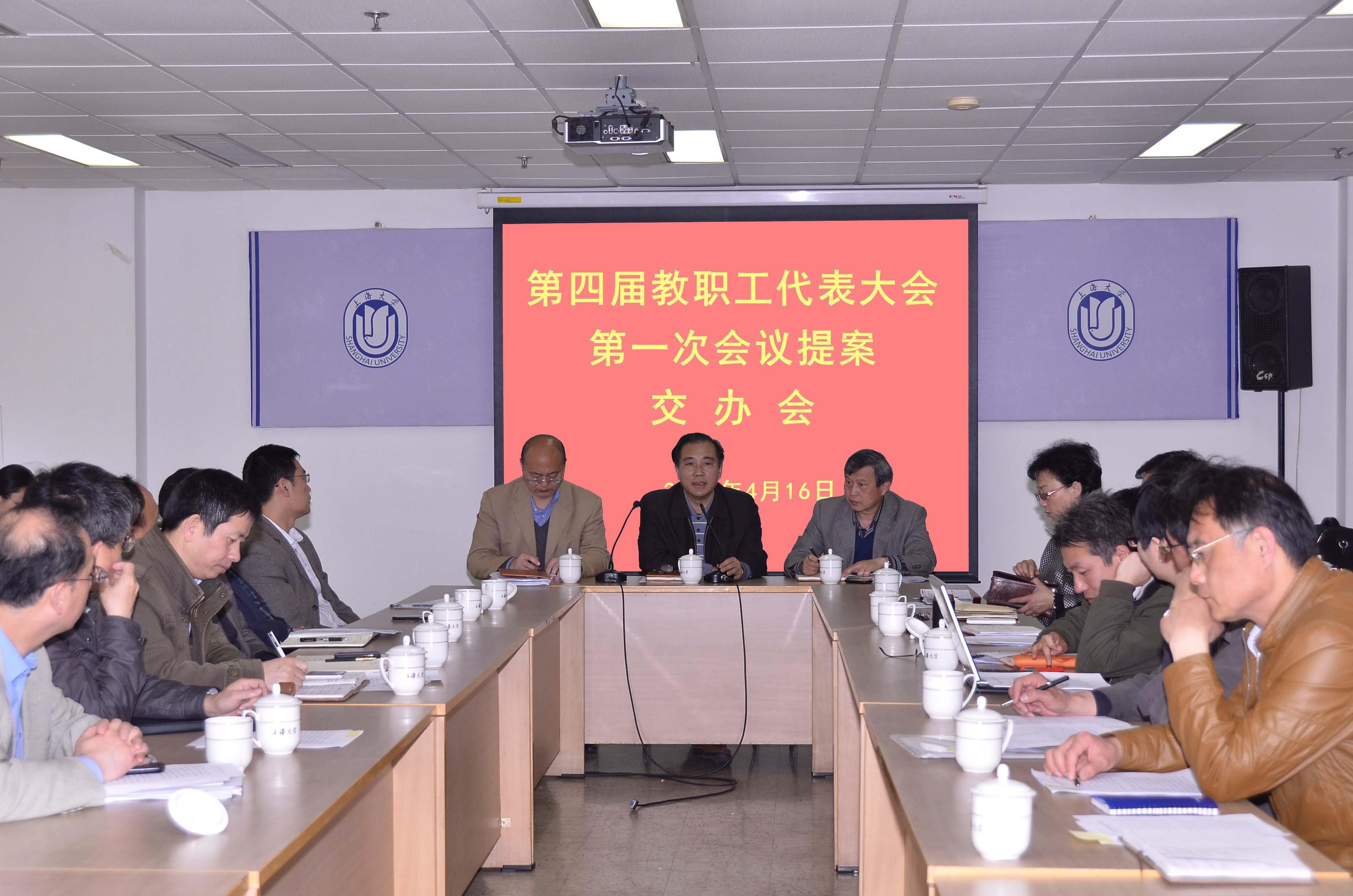 在我校四届一次教代会提案工作第一会议确定了立项的提案和承办单位、部门之后,4月16日下午1点半,提案工作委员会在校本部行政楼501会议室召开第二次会议,对立项的提案进行了交办。校党委副书记、纪委书记、校工会主席忻平出席会议并讲话。会议由提案工作委员会主任、校党委常委、校长助理、组织部部长徐旭主持。校提案工作委员会委员、各办案职能部门负责人参加了会议。