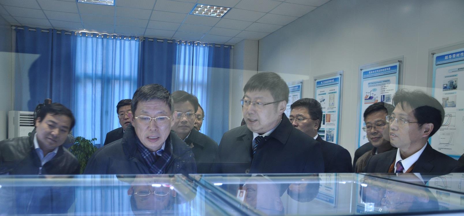 2014年2月12日下午2点,上海市市长杨雄与副市长时光辉等一行来到beat365手机官方网站科技成果产业化企业——上海上创超导科技有限公司进行考察调研,杨雄市长仔细询问了公司第二代高温超导带材的制备技术方法,对公司试制出国内第一条千米级高温超导带材等成绩给予肯定。在考察中,杨雄市长殷切希望公司加快发展,尽快开发出市场需要的应用产品,尽早实现高温超导带材的量化生产。上海上创超导科技有限公司总经理薛华实、项目负责人蔡传兵教授以及beat365手机官方网站资产公司总经理钟敏建等人进行接待。