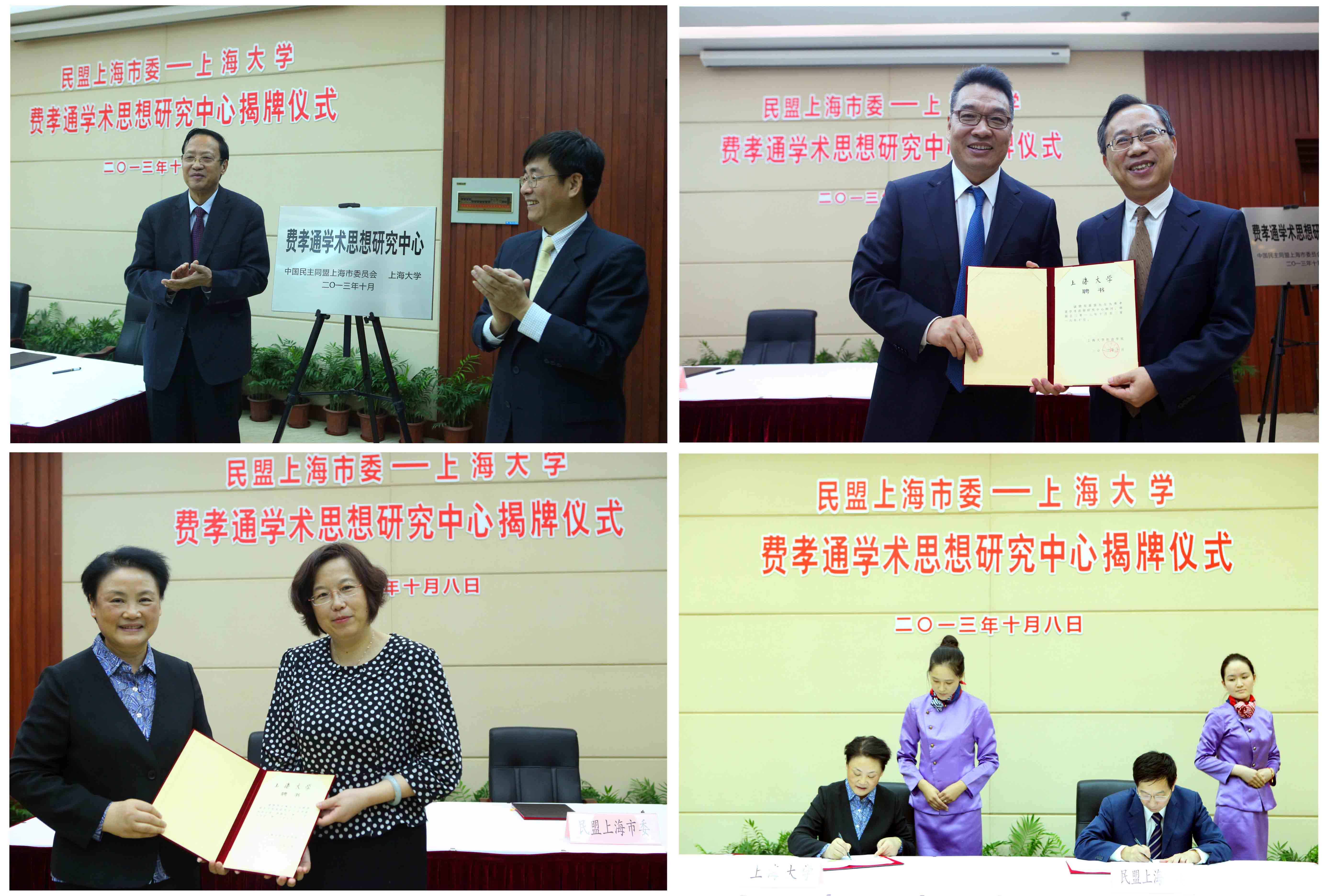民盟上海市委方荣副主委与李友梅副校长分别代表民盟市委和beat365手机官方网站签订双方合作框架协议。张宝文主席和于信汇书记为研究中心揭牌。费孝通学术思想研究中心正式宣告成立。张宝文及郑惠强被聘为费孝通学术思想研究中心顾问,沈志刚和李友梅任研究中心主任,beat365手机官方网站社会学院院长张文红任研究中心副主任,李友梅任研究中心学术委员会主席(兼)。