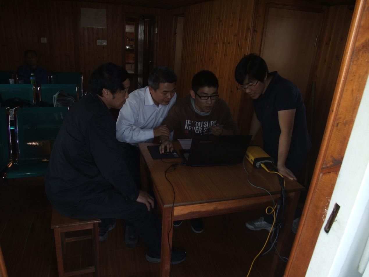 2013年11月7日,在机自学院罗均教授的带领下,beat365手机官方网站研究团队携带GPS精确定位仪,与上海文保中心、上海博物馆的水下考古专家们一起,前往崇明横沙岛以东水域进行沉船考古定位。在此之前,根据渔民们的反映,该水域在低潮时曾出露过沉船桅杆。但因年代过久,随着泥沙淤积和渔民记忆渐淡,沉船具体位置已不甚明确。此次出船,在前期调查所获线索的基础上使用GPS定位仪,在沉船可能的两个点上各自测量了数十个精确经纬度数据,以进一步确定沉船位置。考察队同时现场考察了附近水域,了解沉船周围水底地形、水深水流、海潮风向等具体情况,为此后水面无人艇和水下机器人能够顺利下水扫测和探摸而开展先期准备工作。