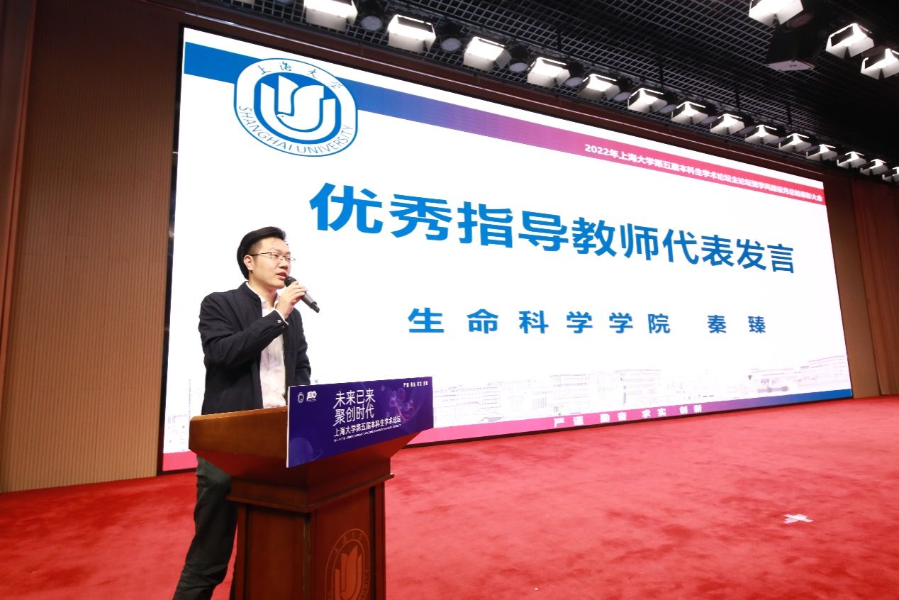 钱伟长学院夏智霖、理学院焦昌华、微电子学院杨嘉怡、文学院严语、管理学院胡方凯、上海电影学院彭思琪等6位同学作为获奖代表分享了自己的研究成果和心得体会。上海美术学院郭亮老师和生命科学学院秦臻老师作为优秀指导教师代表发言,并分享了在学术论坛中指导学生如何做科研的经验以及与学生共同成长的故事。