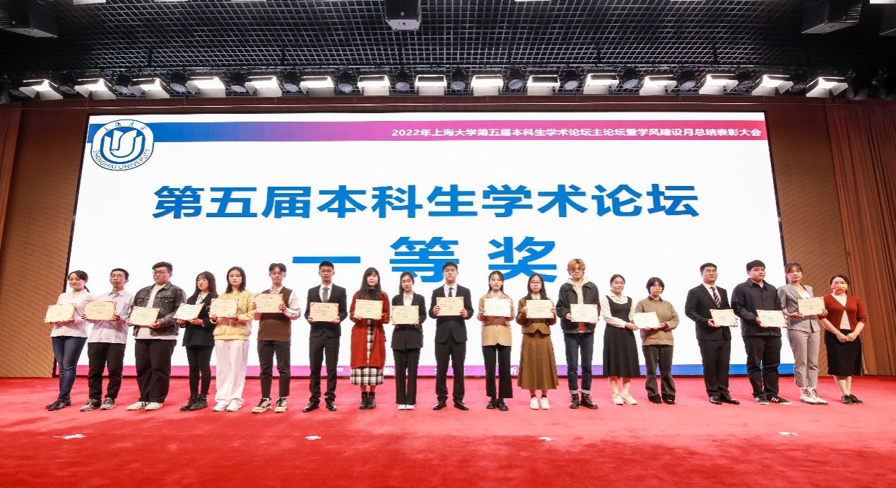 11月27日下午,beat365手机官方网站第五届本科生学术论坛颁奖典礼暨第二届学风建设月总结表彰大会在宝山校区图报厅拉开帷幕。校学术委员会秘书处、教务部、科研管理部、国际部、对外联络处、学生工作办公室(武装部)、校团委、创新创业学院等相关部门负责人以及各书院各学院的领导、优秀指导教师、学业分中心负责老师和各学院获奖学生出席大会。