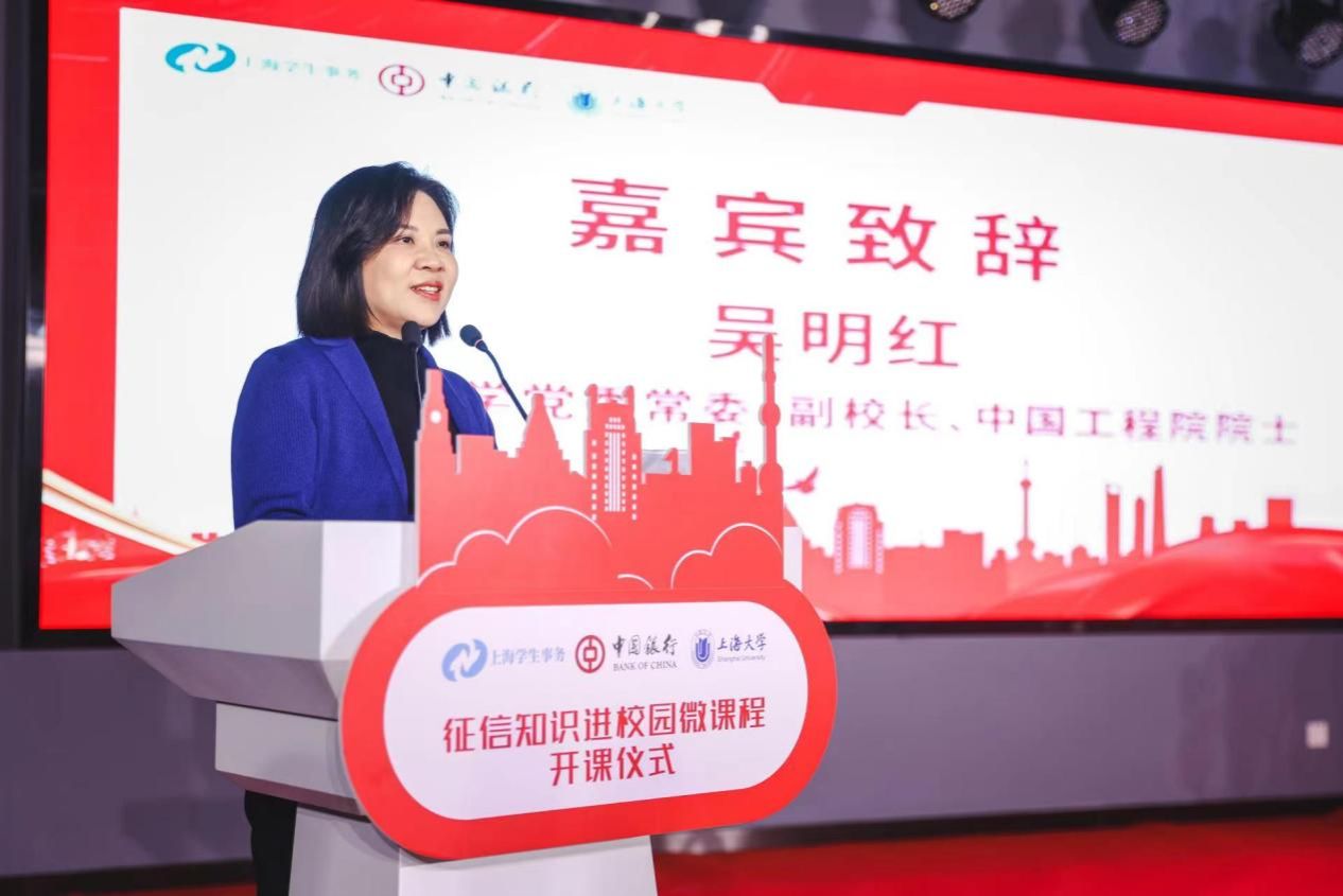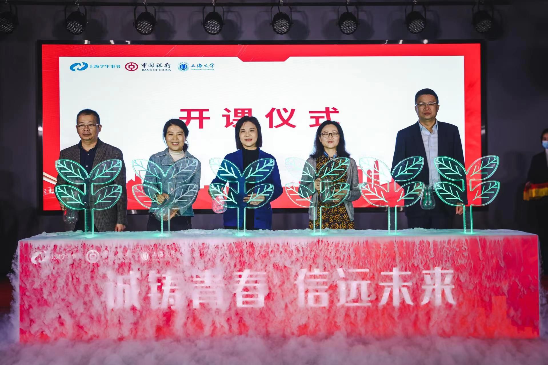 上海市教育委员会一级调研员赵靖茹,beat365手机官方网站党委常委、副校长、中国工程院院士吴明红,中国人民银行上海总部金融服务二部征信业务管理处处长王瑾,中国银行上海市分行资深客户经理杨军,上海市学生事务中心副主任王涛,中国银行上海市分行财务管理部总经理张屏,beat365手机官方网站学生工作办公室主任、武装部部长、本科生书院管理中心主任孟祥栋,beat365手机官方网站团委书记冯凌燕及中国人民银行上海总部、上海市学生事务中心、中国银行上海分行、beat365手机官方网站的其他领导及各方人员以及beat365手机官方网站学生代表共同出席此次活动。