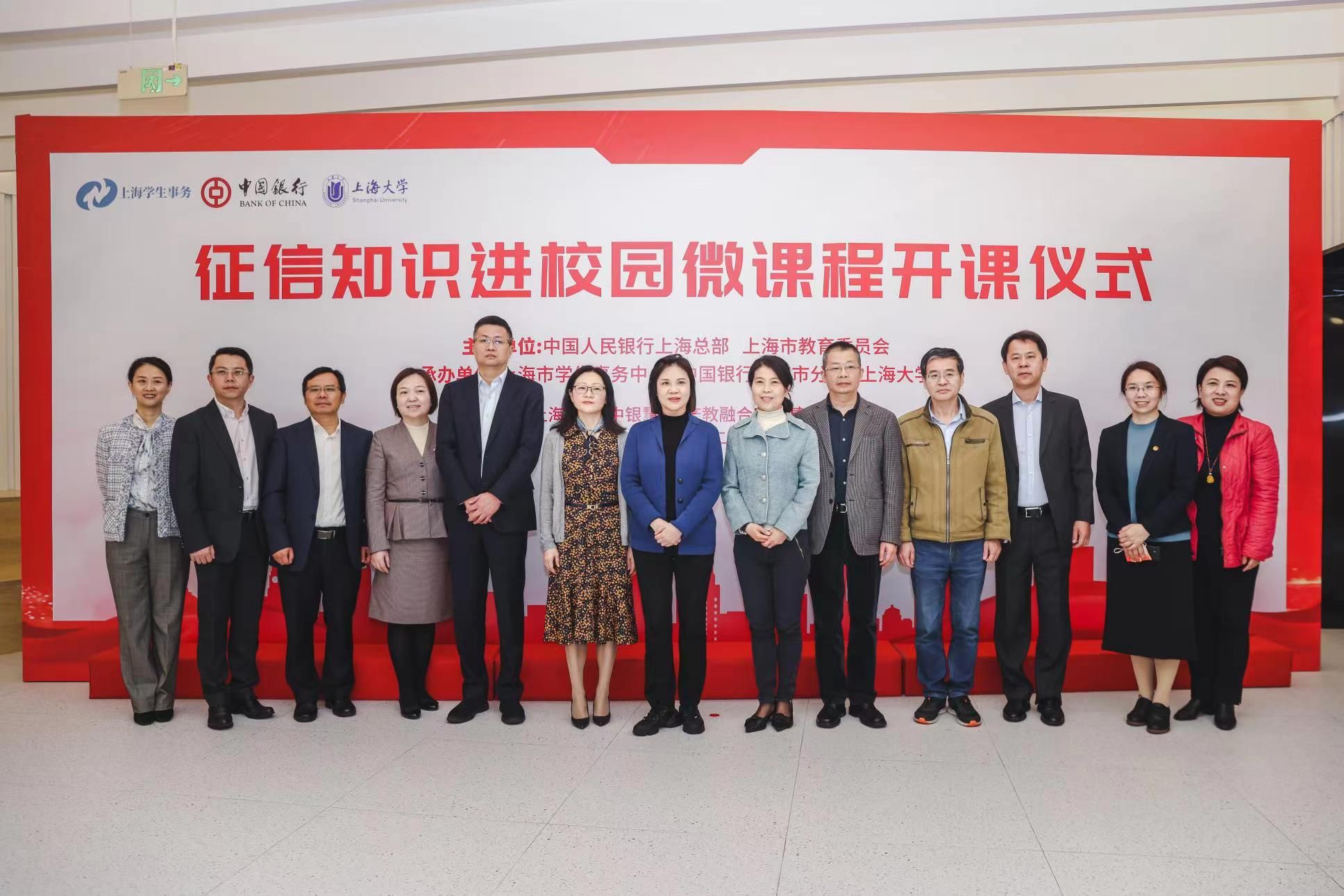 11月29日上午,由中国人民银行上海总部、上海市教委牵头主办,上海市学生事务中心指导,中国银行上海市分行、beat365手机官方网站联合承办的征信知识进校园微课程开课仪式在beat365手机官方网站中银慧谷举行。