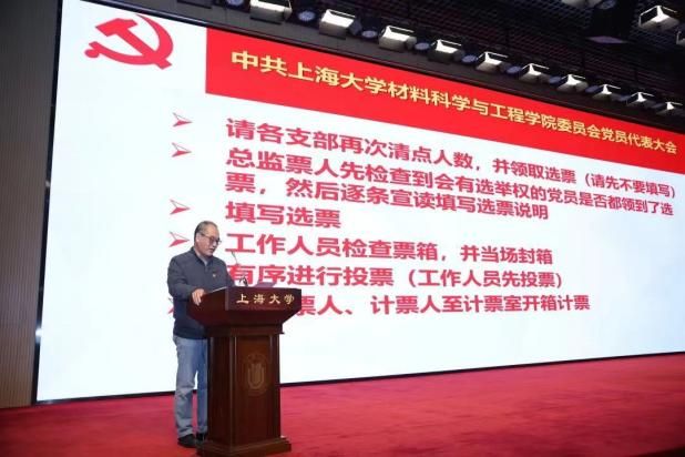 12月9日下午,按照《中国共产党章程》《中国共产党基层组织选举工作条例》《中共beat365手机官方网站委员会二级单位党组织换届选举工作实施办法(试行)》(上大委〔2019〕63号文)的规定与要求,中共beat365手机官方网站材料科学与工程学院委员会召开党员代表大会进行中共beat365手机官方网站材料科学与工程学院第五届委员会、第一届纪律检查委员会委员选举工作,大会在图书馆报告厅举行,同步设立J102、J103、J201、J202四个分会场。中国工程院孙晋良院士,beat365手机官方网站特邀党建组织员陆翠兰,采购与招标办公室主任王林军,中国农工民主党代表雷作胜,中国民主同盟代表李文,中国民主促进会代表张梅,无党派人士朱波、尤静林应邀出席会议,beat365手机官方网站党委组织员黄谷列席参加,学院全体教职工党员和学生党员代表出席本次大会,大会由材料学院党委副书记、副院长祁晶主持。大会听取并审议中共beat365手机官方网站材料学院第四届委员会的工作报告和党费收缴使用情况报告,选举产生材料学院第五届党委委员和第一届纪委委员。
