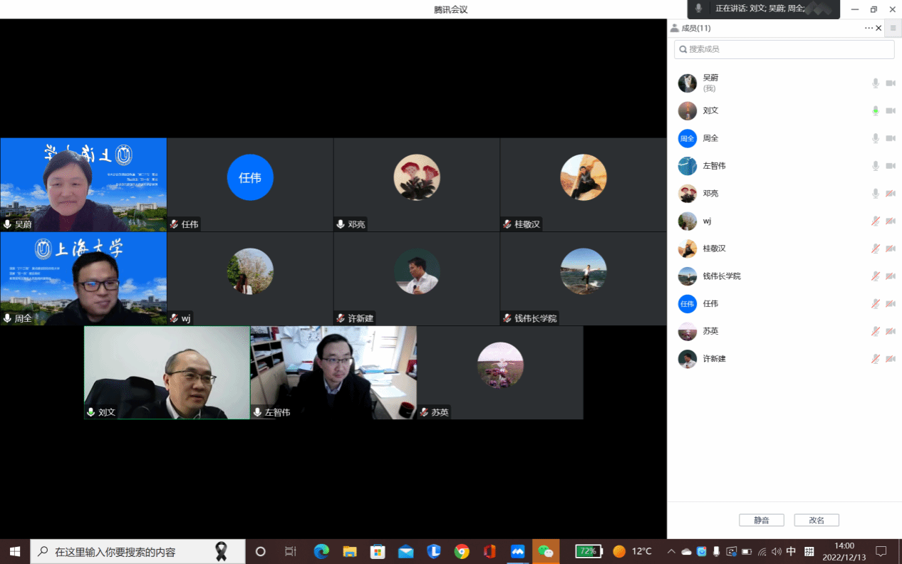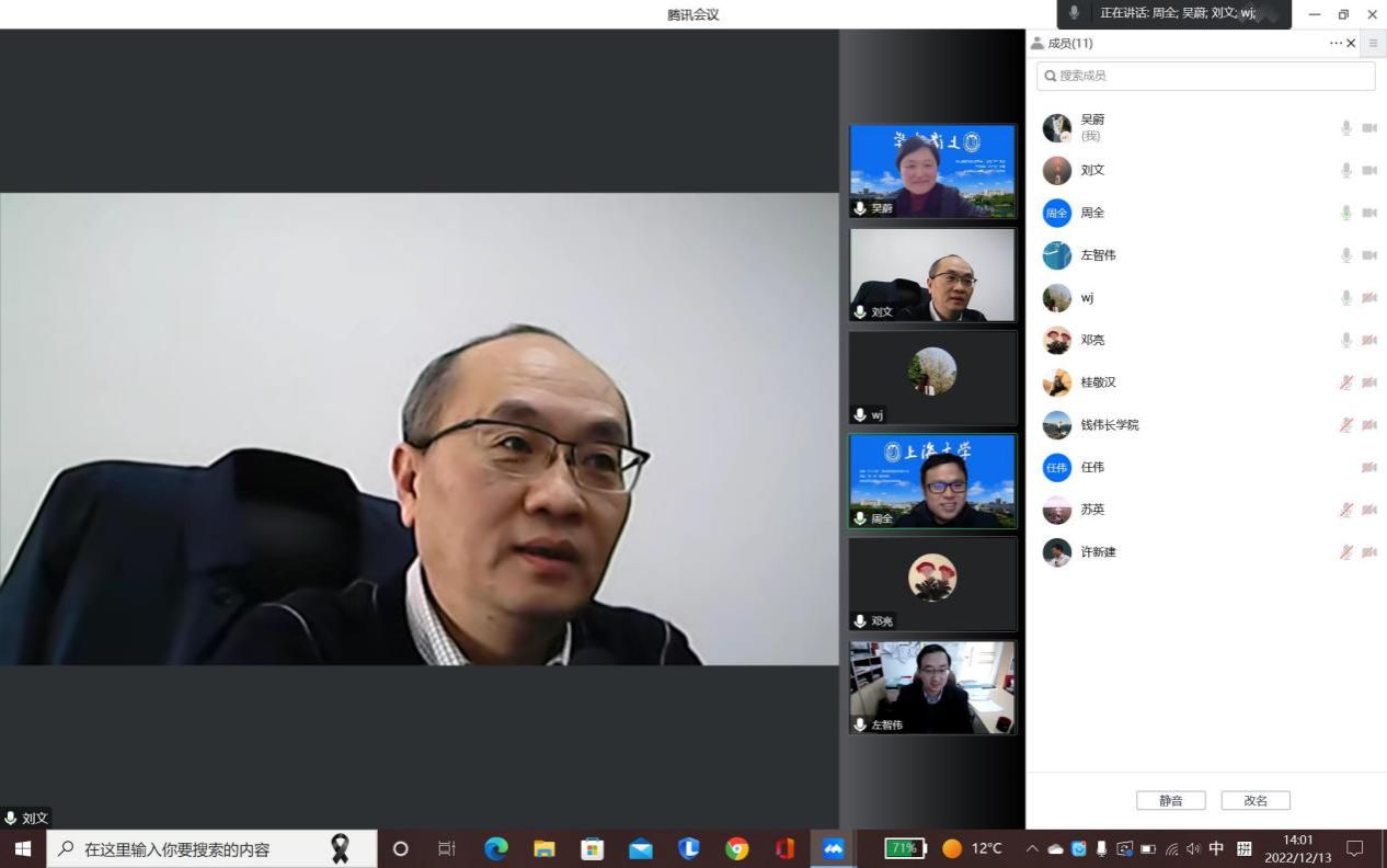 12月13日下午,beat365手机官方网站钱伟长学院与中国科学院上海有机化学研究所相聚云端共商拔尖人才培养。中国科学院上海有机化学研究所副所长、生命有机国家重点实验室副主任刘文,所务委员、金属有机国家重点实验室副主任邓亮,战略规划部部长左智伟,中科院天然产物有机合成化学实验室党支部书记桂敬汉,研究生部主任王娟,钱伟长学院党委书记吴蔚,党委副书记、院长周全,党委副书记、副院长沈青松,副院长许新建、任伟和院办主任苏英出席本次交流会。