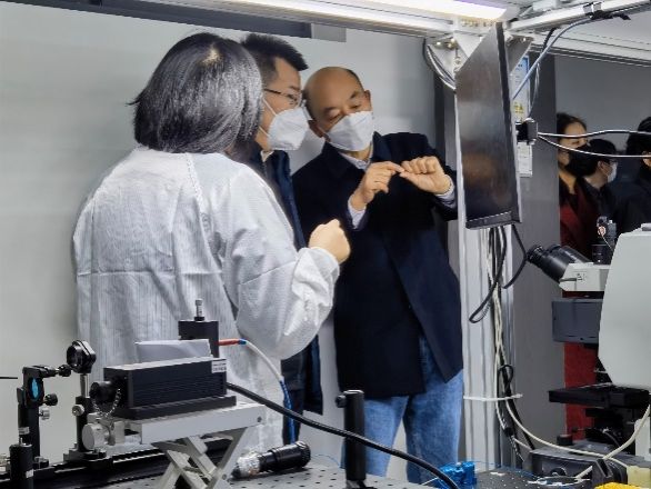 孙真荣副主任一行首先参观了特种光纤与光接入网重点实验室,在参观过程中,王廷云院长、黄素娟书记和实验室骨干教师详细汇报了实验室近年来新建的创新研发平台、特种光纤制作工艺和制备技术,以及研发的光纤精密测量仪器等科研工作,孙真荣副主任对实验室长期立志于服务国家重大需求,努力突破关键技术给予了充分肯定。