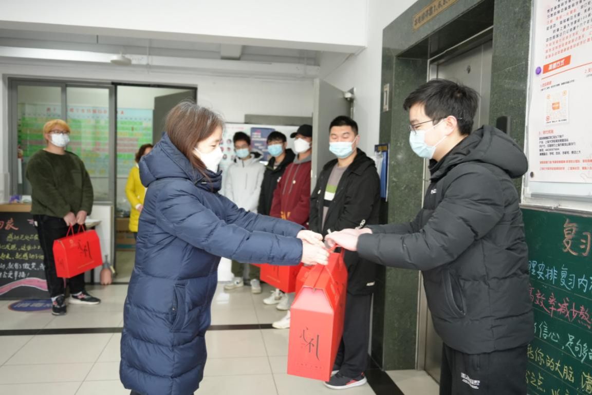 最后,聂校长为留校的同学们送上精心准备的新春大礼包,里面有各类坚果、牛奶等营养品,祝福每个人在新年都能增强体魄,保持健康。