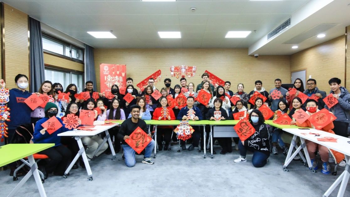 本次文化讲座及体验活动于兔年新年来临之际成功举行,很好地增进了各国国际学生对中国农历新年传统的了解,增强了“学在上大”的归属感,也是疫情之后国际学生回归校园,重新融入校园学习与生活的良好开端。相信所有国际学生在新的一年定能大展宏“兔”、“兔”飞猛进、前“兔”无量!(撰稿:苗昱)