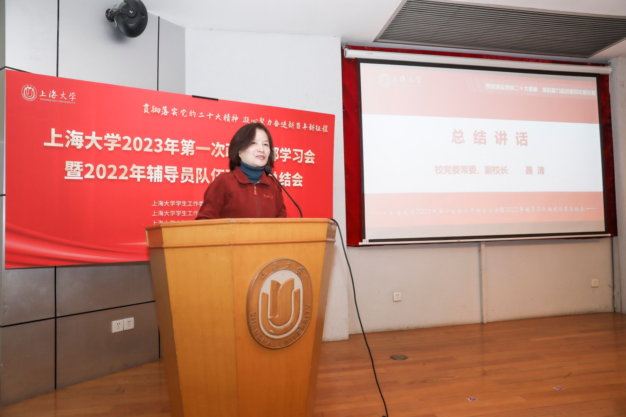 开局关系全局,启程标定全程。2月10日上午,2023年第一次政工干部学习会暨2022年辅导员队伍建设季总结会在行政楼报告厅举行。校党委常委、副校长聂清,党委常委、组织人事部常务副部长、组织处处长沈艺,宣传部、招生与毕业生就业工作办公室、马克思主义学院、党委研究生工作部、学生工作办公室(武装部)、校团委、党委教师工作部等部门和学院领导以及学工办全体班子成员、各书院执行院长、各学院分管学生工作的党委副书记、副院长和全体本科生辅导员参加了本次会议。本次会议由学生工作办公室副主任、本科生书院管理中心副主任马成瑶主持。
