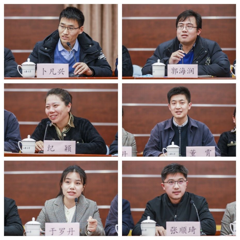 在交流环节,文化遗产和信息管理学院青联会分会会长卜凡兴、通信与信息工程学院青联会分会会长郭海润结合各自学院的特点,对分会开展的工作进行了介绍,为各二级单位青联会分会开展工作提供了新思路。来自管理学院、医学院、生命学院、机自学院的四位优秀青年教师代表纪颖、董霄、于罗丹、张顺琦分别结合自身成长经历和工作体会作了分享。
