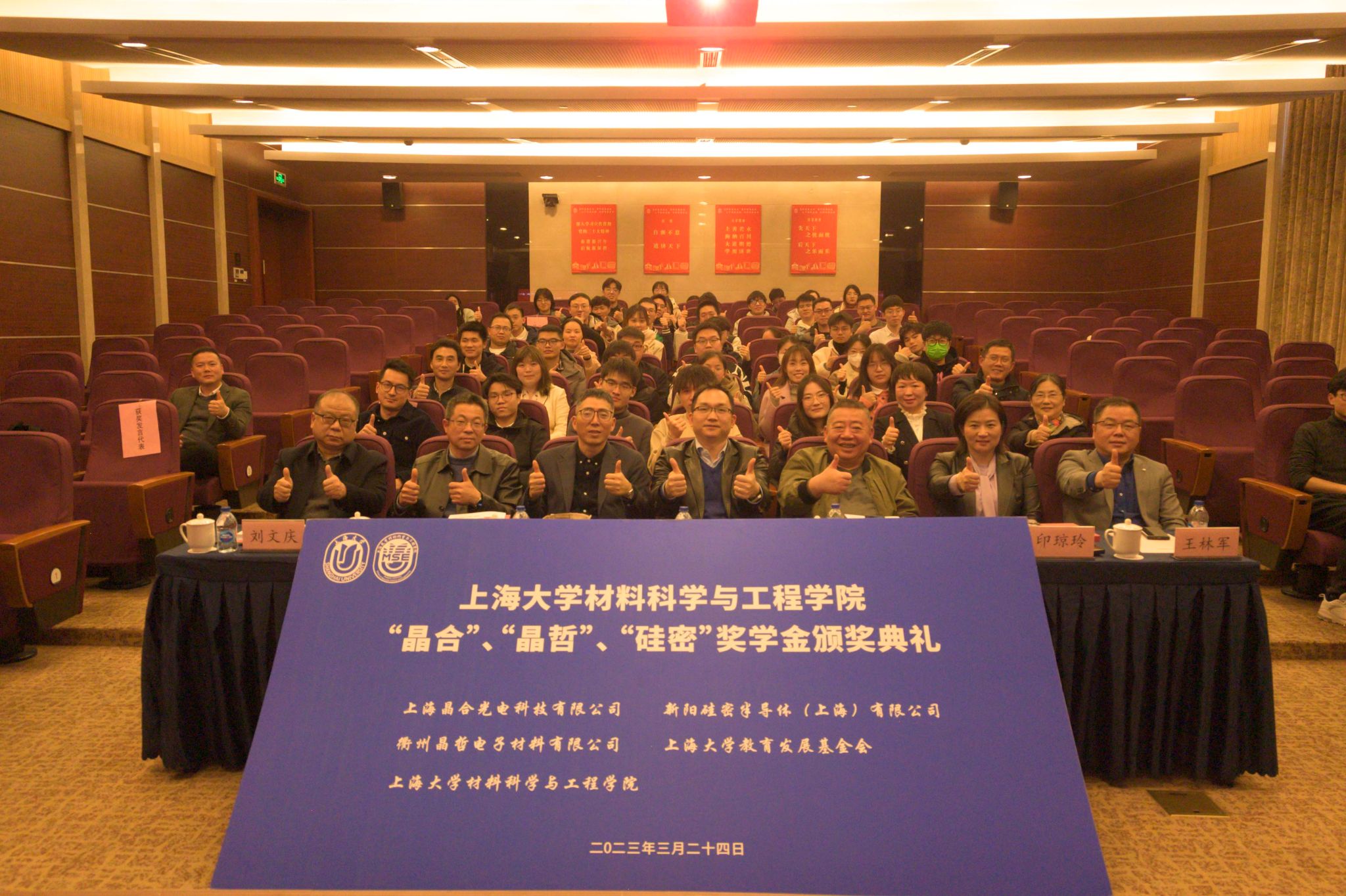 3月24日,2022-2023学年材料科学与工程学院“晶合”“晶哲”“硅密”奖学金颁奖典礼在乐乎楼学海厅举行,上海晶合光电科技有限公司董事长余涛、电子事业群团长路坦,新阳硅密半导体技术有限公司董事长印琼玲、人事经理金明臻,衢州晶哲电子材料有限公司董事长张向东、公司董事钱永彪,beat365手机官方网站对外联络处处长陈然,beat365手机官方网站采招办主任、光电子材料与器件研究中心主任王林军,材料学院党委副书记、纪委书记刘文庆,党委副书记、副院长祁晶,副院长黄健,电子信息材料系主任沈悦,beat365手机官方网站(浙江)高端装备基础件材料研究院副院长、材料学院科技发展中心主任赖建明,材料学院电子科学与技术专业教研室主任张继军与获奖学生出席本次颁奖典礼。