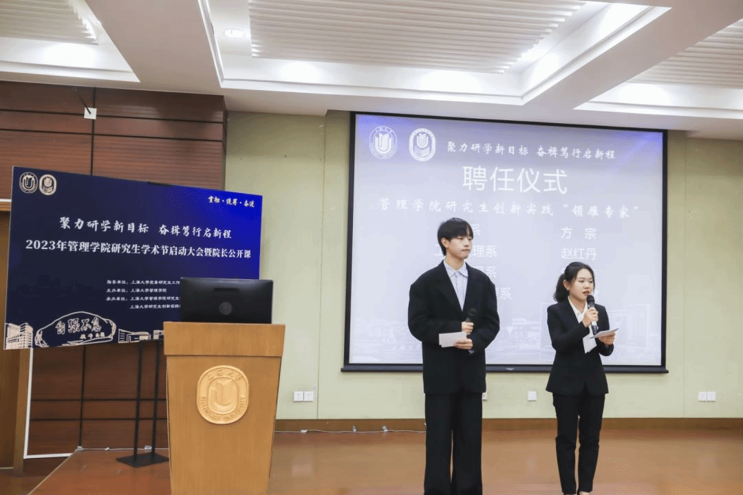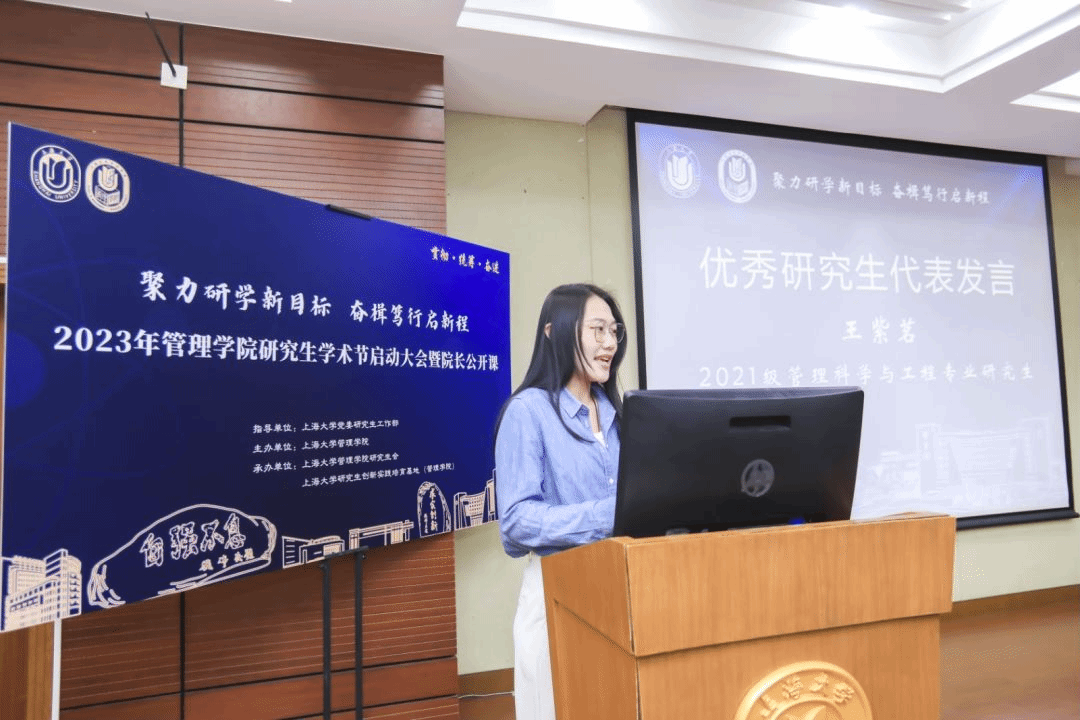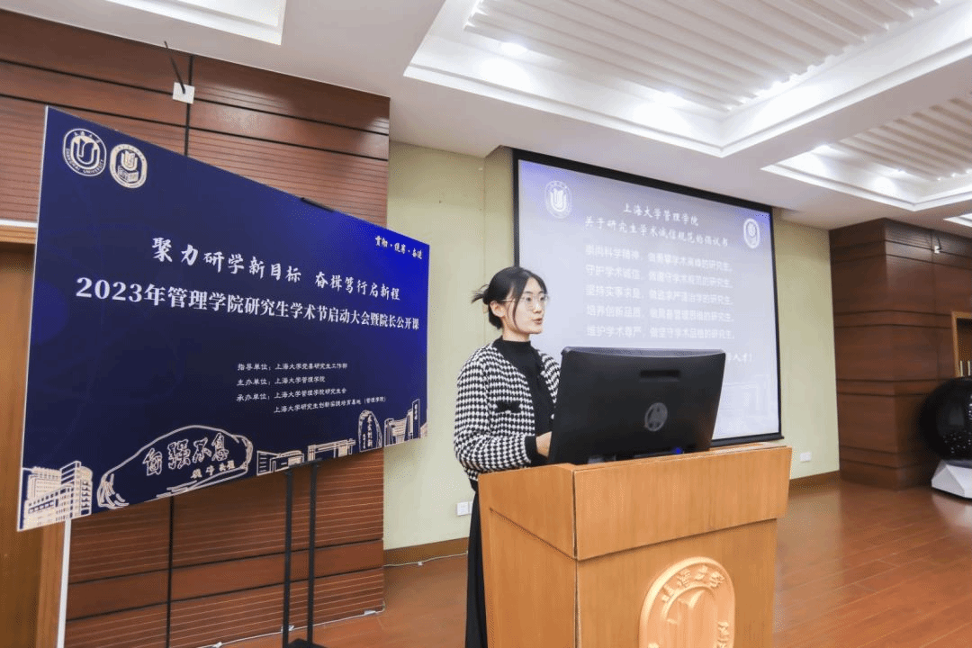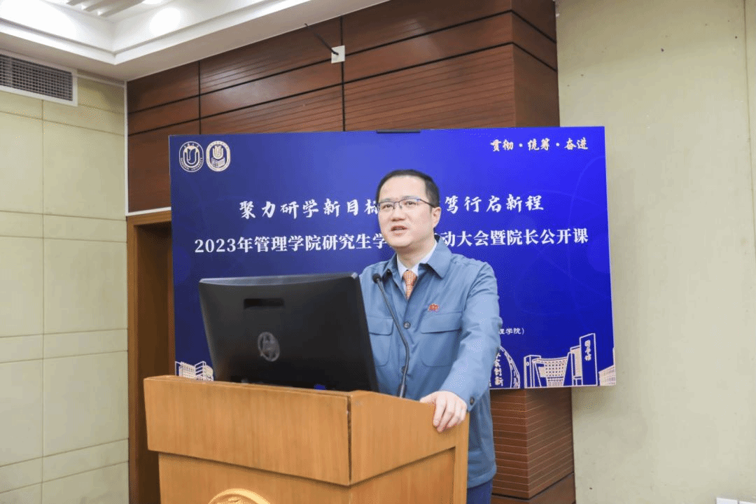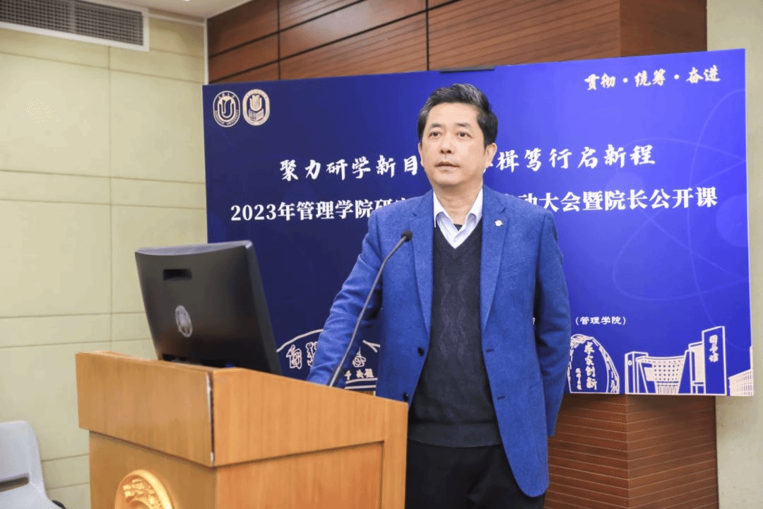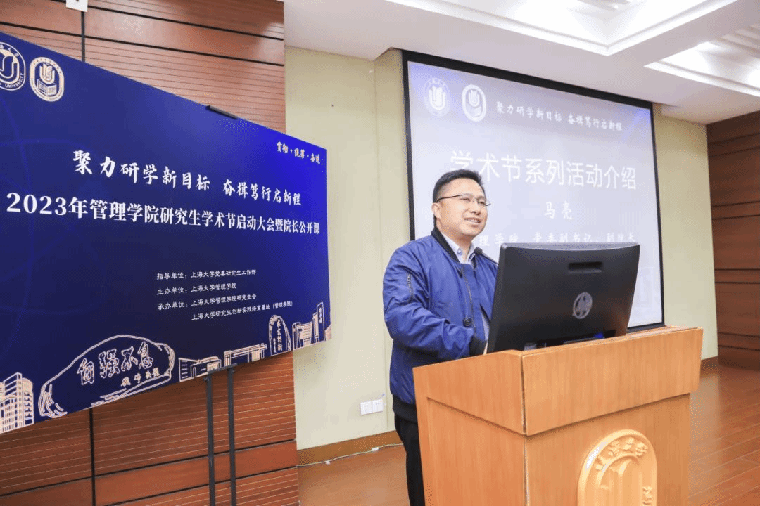 为深入贯彻习近平新时代中国特色社会主义思想,落实习近平总书记对研究生教育工作、学风建设和弘扬科学家精神的重要指示。beat365手机官方网站管理学院围绕“双一流”建设的总体目标,以坚定不移“贯彻”、齐心协力“统筹”、驰而不息“奋进”为宗旨,于2023年3月30日下午在beat365手机官方网站宝山校区蔡冠深讲堂,举行“聚力研学新目标 奋楫笃行启新程”为主题的学术节启动大会暨院长公开课。