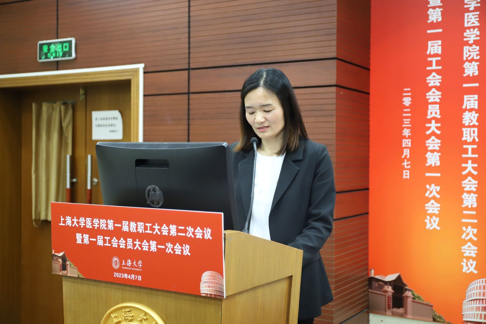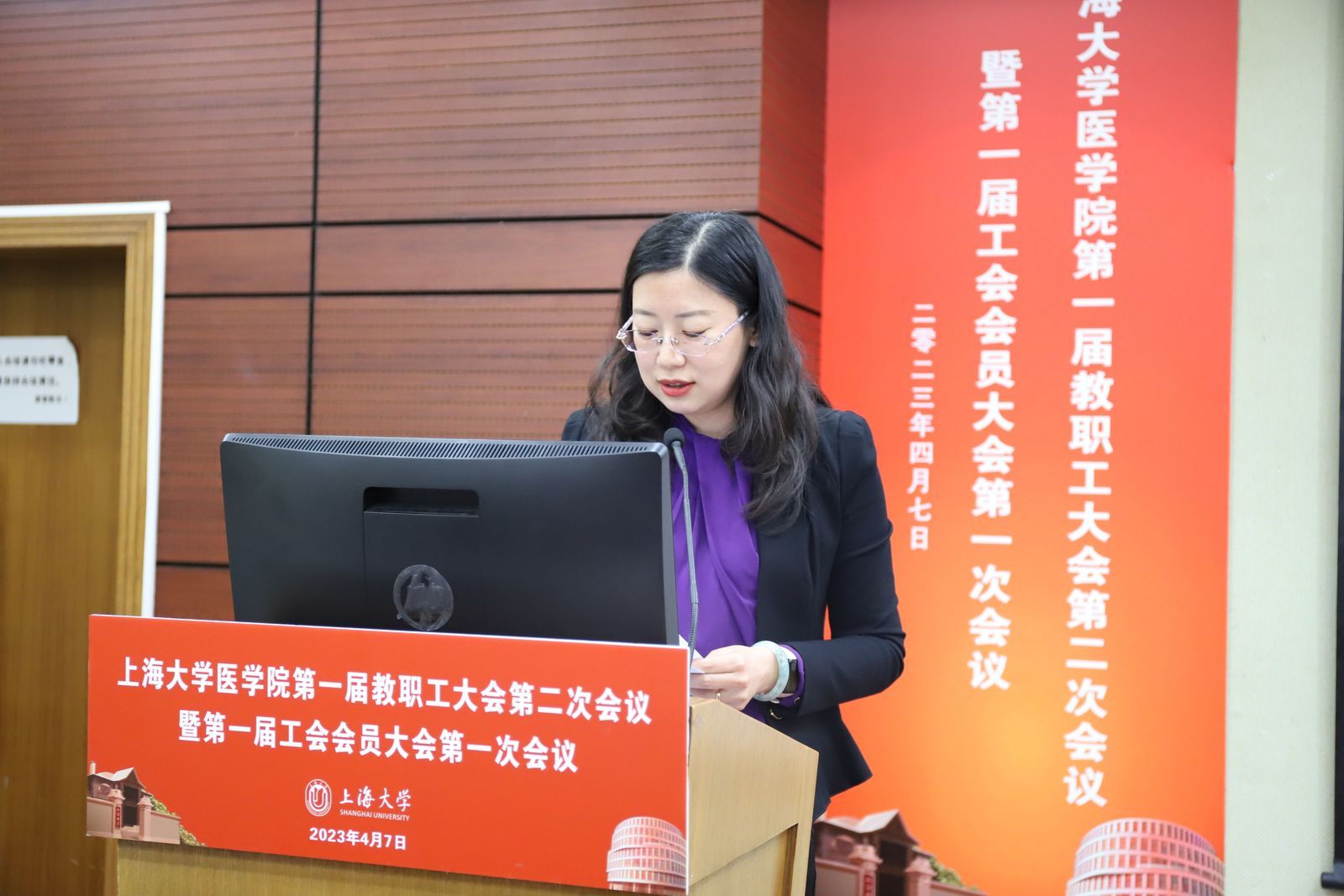 beat365手机官方网站工会副主席勾金华代表校工会向本次大会的成功召开表示热烈祝贺。她表示,教职工代表大会是学校治理体制的重要组成部分,是教职工行使民主权利、依法参与学校民主管理和民主监督的基本制度和基本形式,本次大会的召开将会进一步加强学院老师、工会会员的凝聚力,推动医学院民主政治建设和整体工作的全面发展。