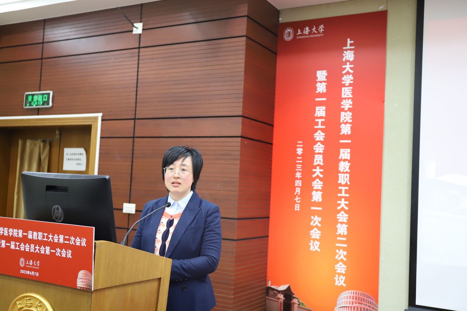 李娟书记代表学院党委向大会的圆满举行表示热烈祝贺,对校工会的指导和全体教职员工的支持表示诚挚感谢。她指出,服务人民健康、服务区域发展、服务国家战略,是医学院助力国家实现高质量发展的必由之路,也是医学院自身实现高质量发展的必由之路。全体教职员工要围绕学院的中心工作坚持不懈,大力弘扬艰苦奋斗精神,保持锐意进取的精神状态,充分发挥主观能动性,在工作中敢于创新,在探索中不断突破,把创新精神贯穿工作的始终,为建设特色鲜明的国际化、融合式、创新型医学院而不懈奋斗。