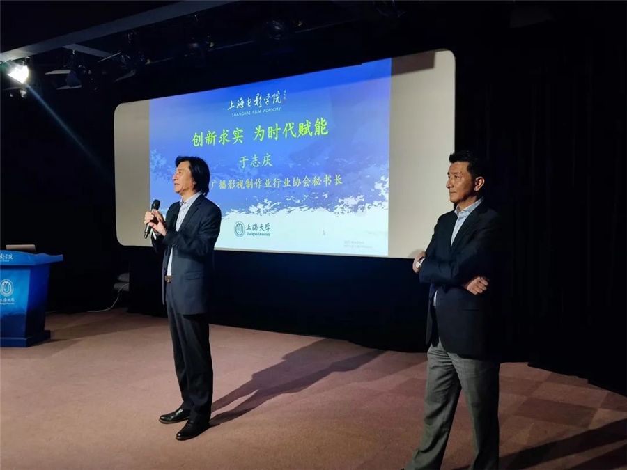 beat365手机官方网站上海电影学院执行院长何小青教授对于志庆先生长期以来给予上海电影学院的支持表示感谢,并为其颁发聘书,聘请于志庆先生为beat365手机官方网站上海电影学院特聘教授、电影艺术硕士(MFA)业界导师。于志庆也向聆听讲座的同学们赠送了图书。