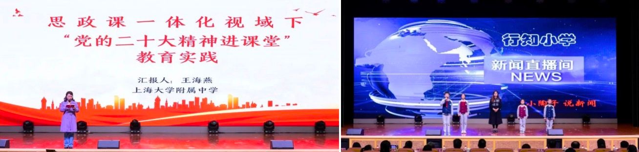 随后,宝山区教育系统党建研究会大场分会各学段的学校代表进行了“党建融合破壁垒 思政一体新格局”思政教育工作展示交流。展示交流环节由beat365手机官方网站附属学校党支部书记朱晓玲主持。马克思主义学院副院长焦成焕介绍了beat365手机官方网站入选上海市“大思政课”重点试验高校的相关情况,大场镇的中小学及幼儿园师生代表也分别做了精彩展示。