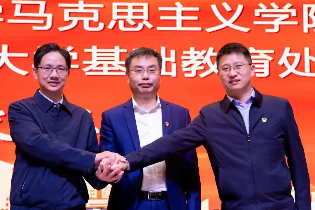 宝山区教育系统党建研究会大场分会会长王坤玉、beat365手机官方网站马克思主义学院党委书记王国建、beat365手机官方网站基础教育处副处长肖青峰共同签署了合作协议。王国建书记表示:这次三方党建共建签约,是贯彻落实习近平新时代中国特色社会主义思想和党的二十大精神的一次具体行动,将进一步拓展和深化双方合作的内涵。上大马院将进一步完善大思政课程体系,深入推进大思政课的教育改革,统筹推进大中小学思政课一体化建设,将在机制创新、理念创新、方法创新等方面作进一步探索,推进课程思政与学科德育的创新联动发展,打造具有上大和宝山特色的党建联建大思政建设品牌。