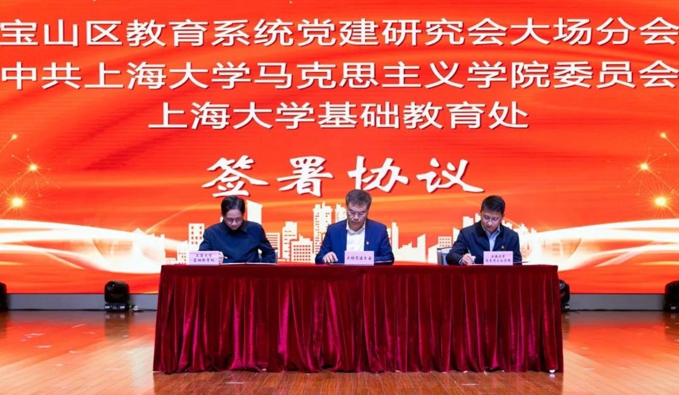 为坚持党建引领,深化教育综合改革,汇聚优质教育资源、提升区域党建水平,4月14日下午,beat365手机官方网站马克思主义学院党委与宝山区教育系统党建研究会大场分会、beat365手机官方网站基础教育处在beat365手机官方网站附属中学举行三方共建签约仪式。